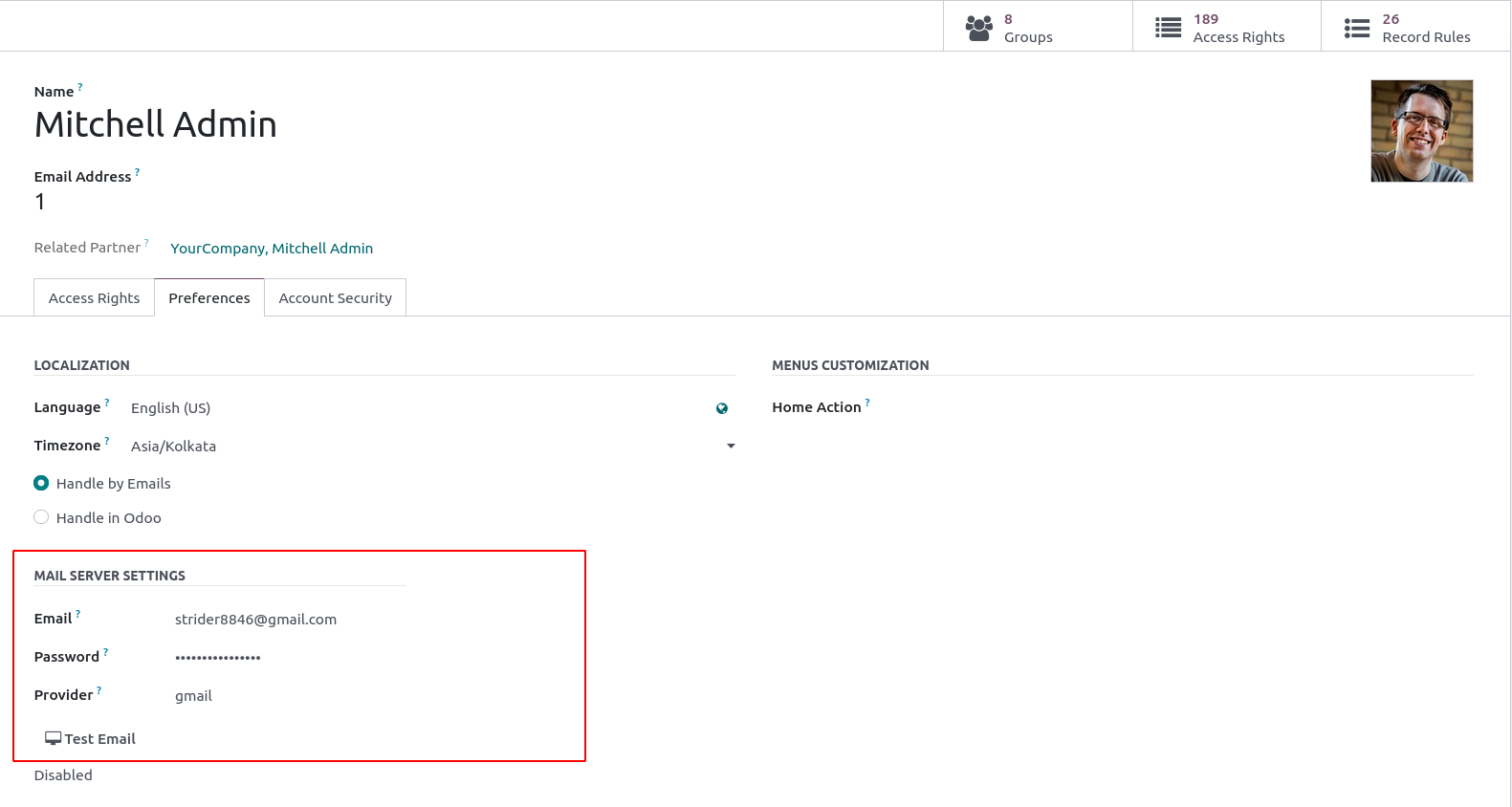 Opting for Auto Generate Mail Server will result in automatic configuration of both Incoming and Outgoing Mail Servers when the User is created.