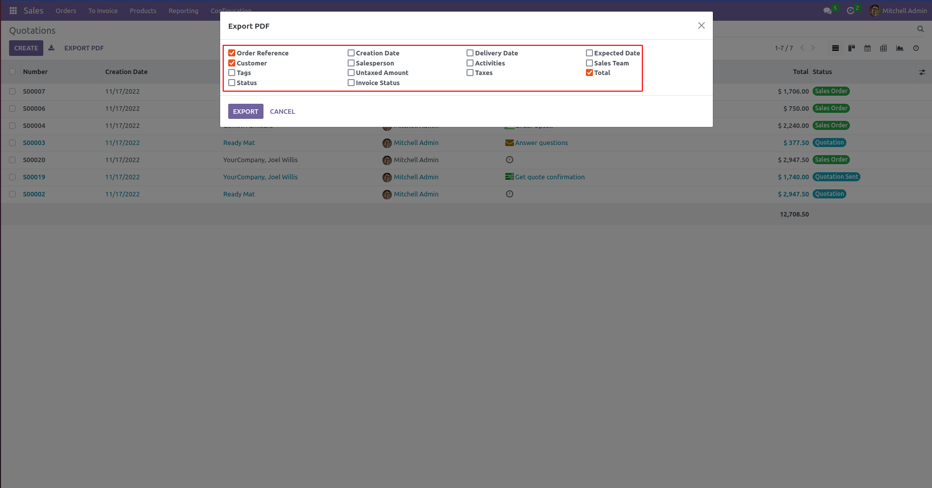 On clicking the Export Button corresponding List view will be exported in PDF Format