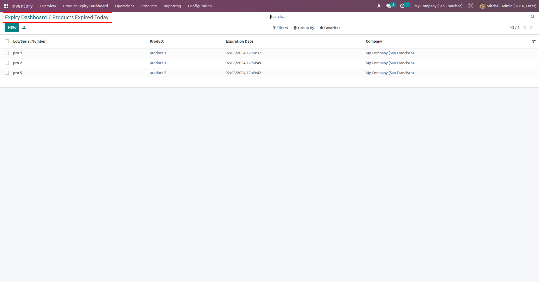 Navigate to Inventory --> Product Expiry Dashboard menu.