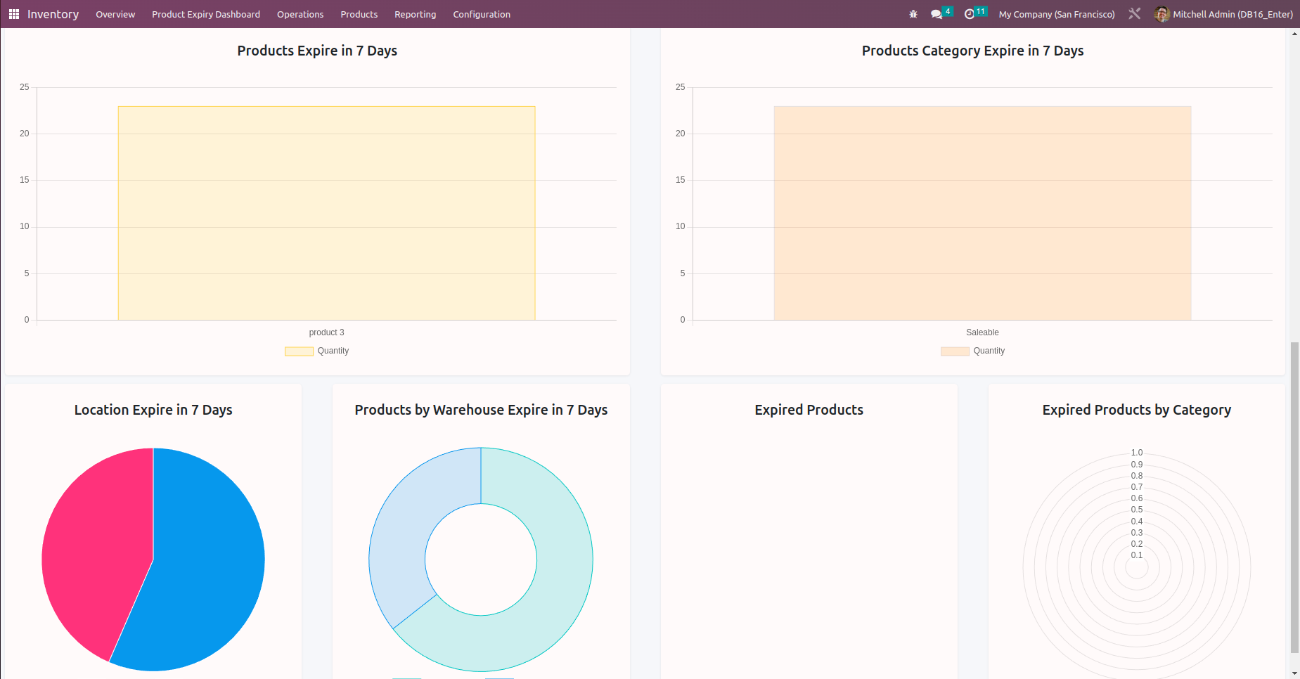 We can view products expiring within 7 days by categorized by category, location and warehouse.