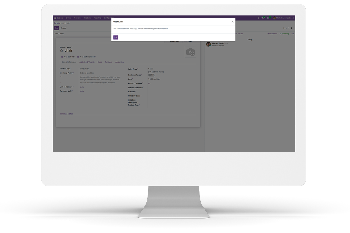Users having the permission can only delete the products, otherwise a warning dialog is shown as below.