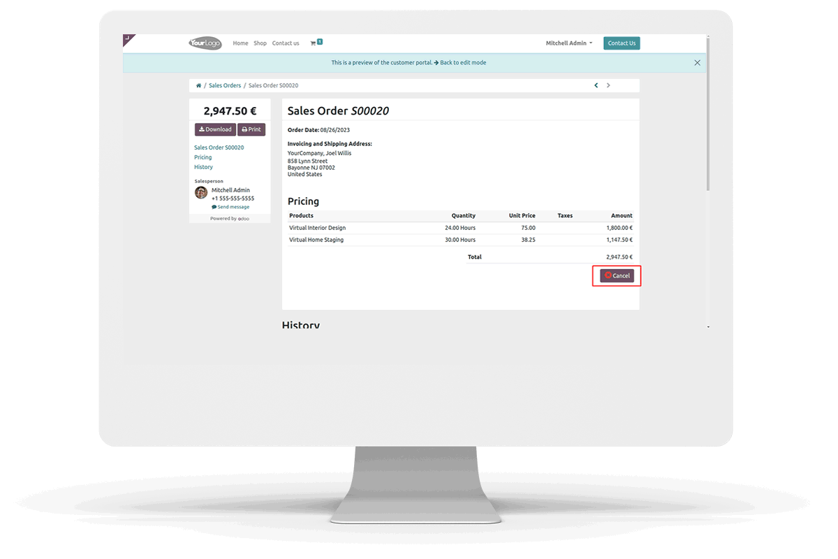 Cancel Sale Order From Website By Adding Reason.See The Reason In Backend .