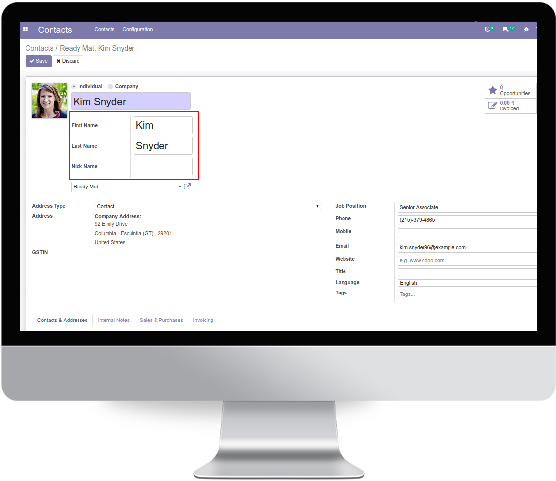 Provides option to add first name, last name and nick name for all contacts including partners.