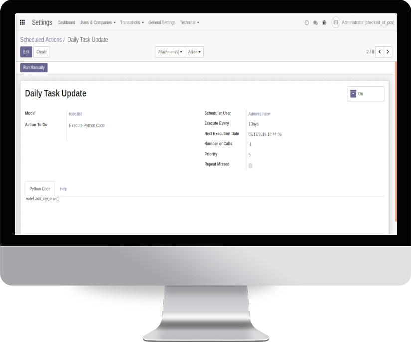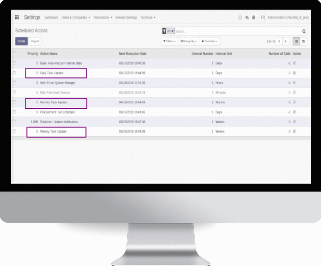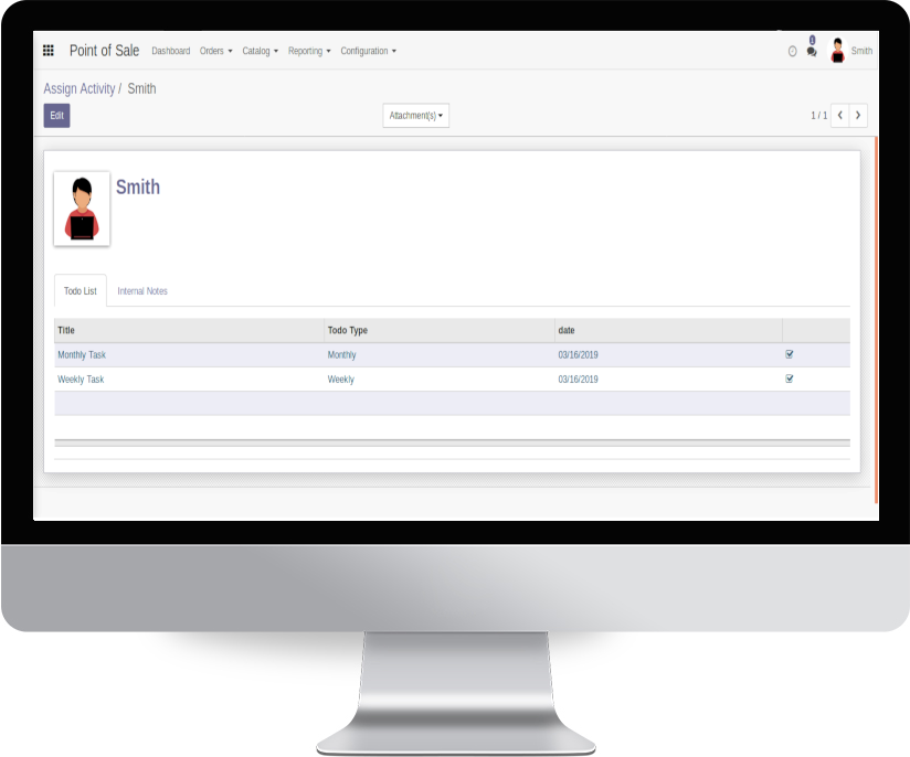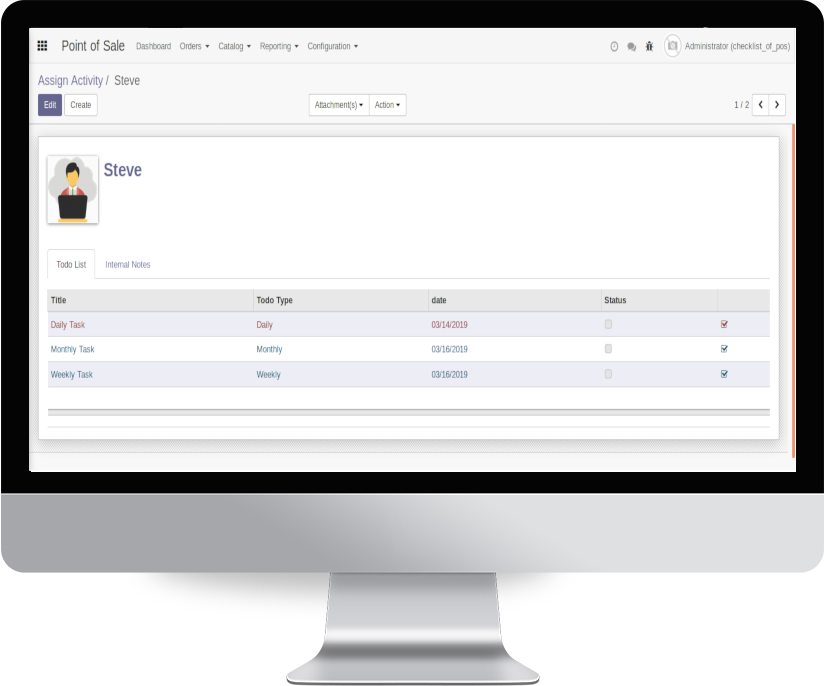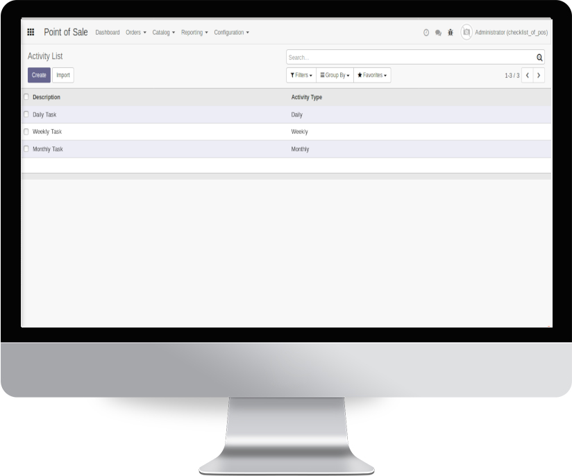 POS Cashier Checklist module helps to manage the Daily,Weekly and Monthly activities of cashier.In which the activities are automatically created according the interval of time