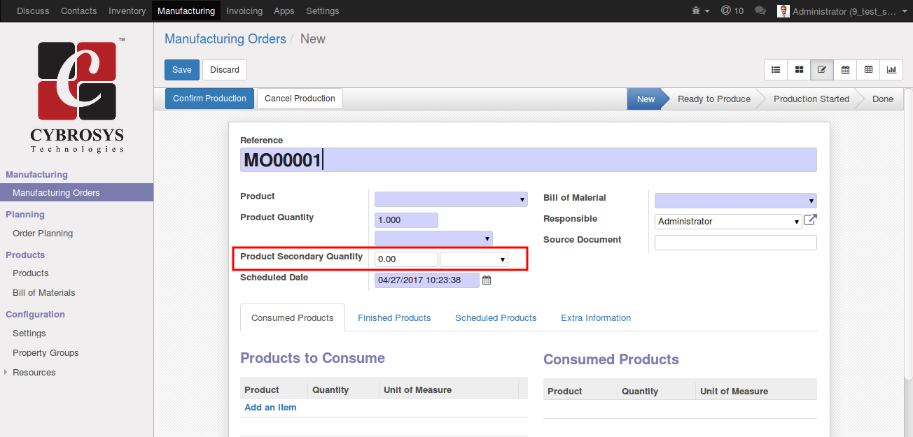 •    Products to Produce With Secondary UoM.