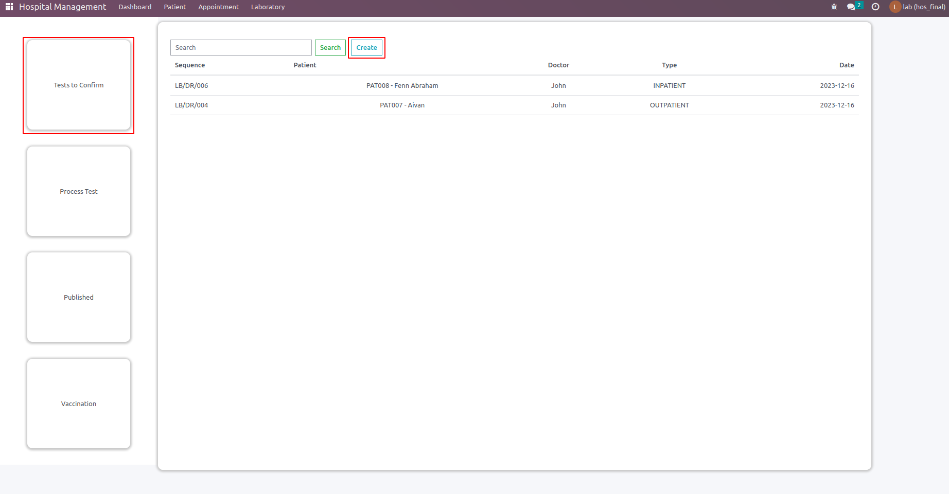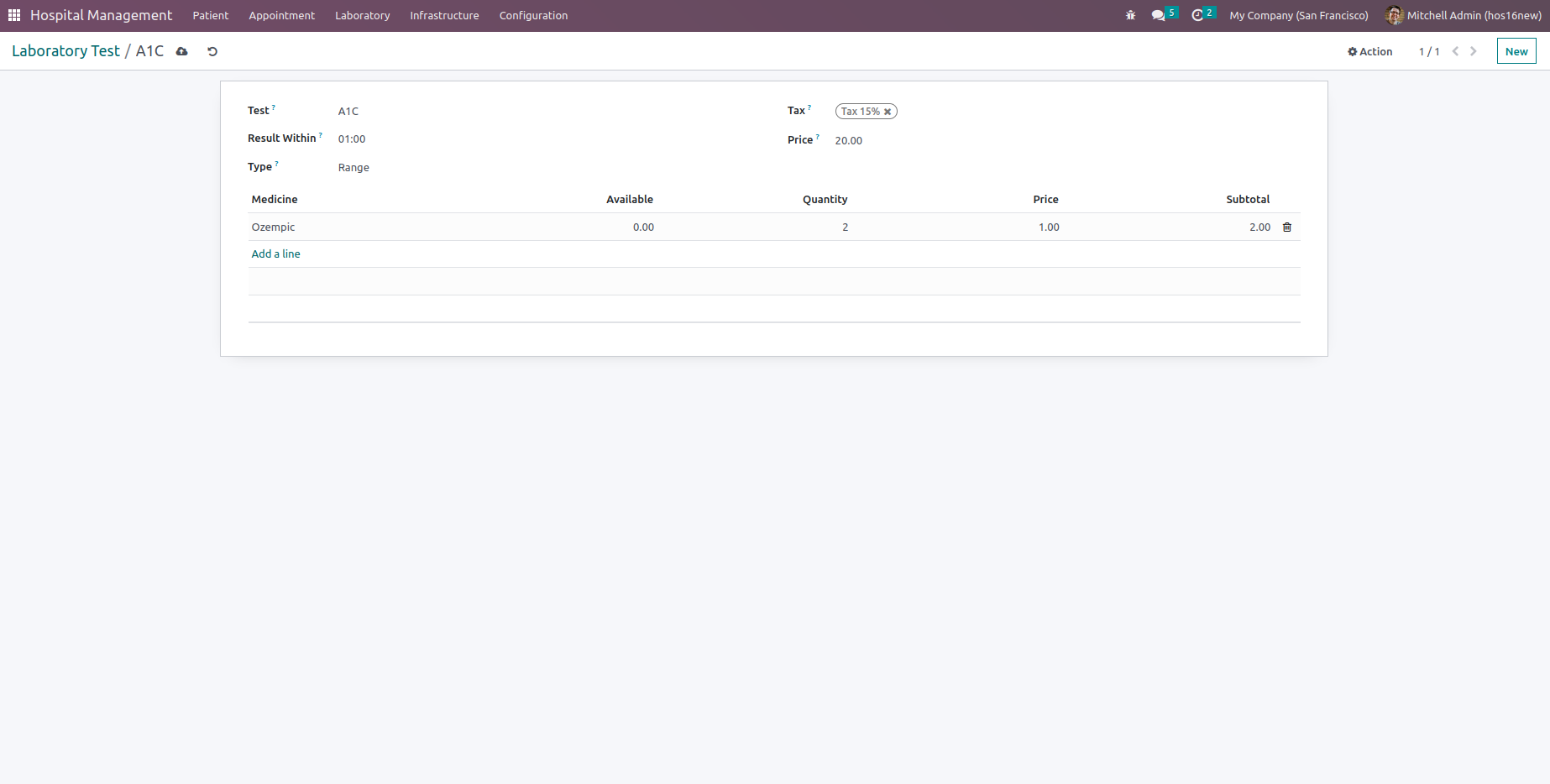 By navigating to Laboratory -> Lab Test, a new lab test can be added.