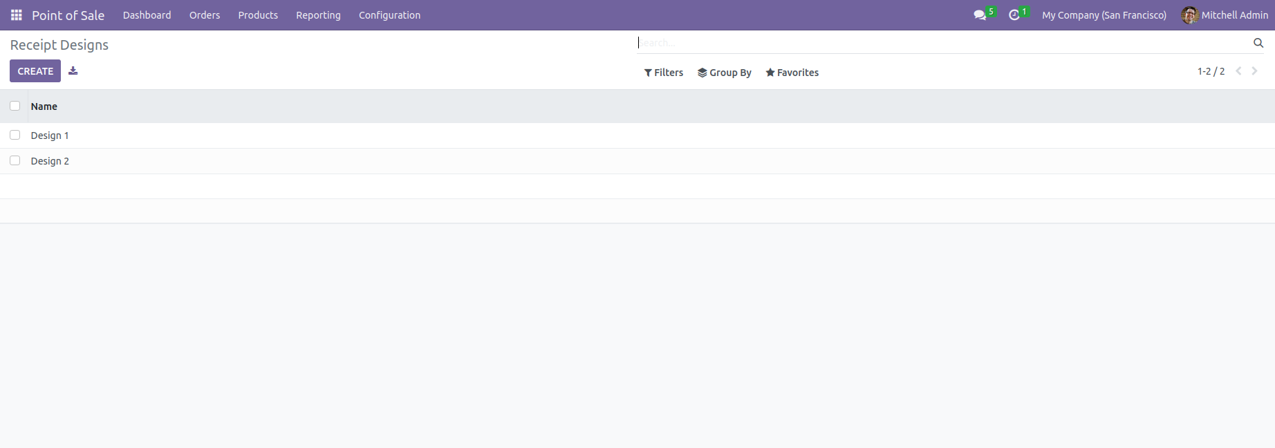User can add the receipt designs from the backend in the menu Receipt Designs.