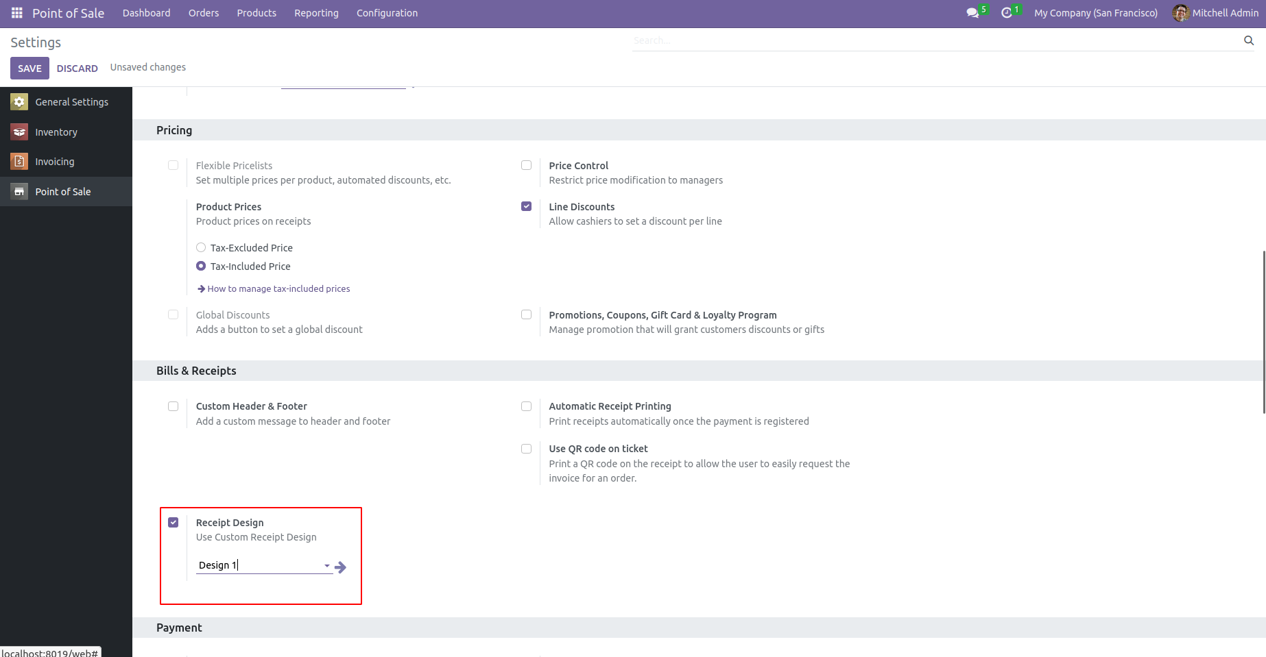 We can choose the receipt design for each POS from the backend of the pos.