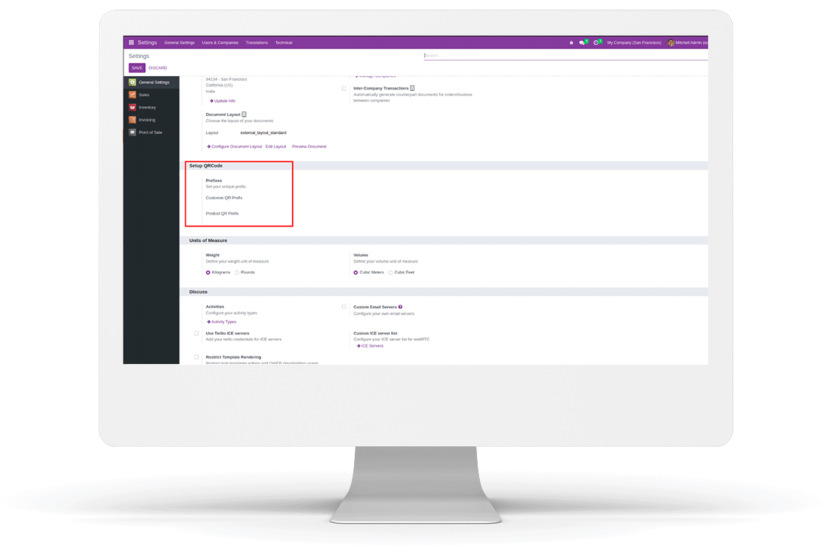 Goto The Customer or Product Form.Click the Generate QR Button. The QR Sequence will be generated and the QR Code will be printed as a PDF.