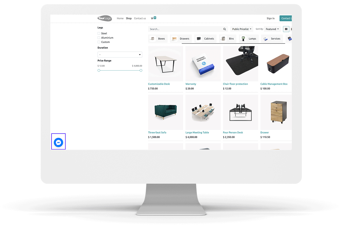 The public can chat with Odoo users directly using the messenger chat.