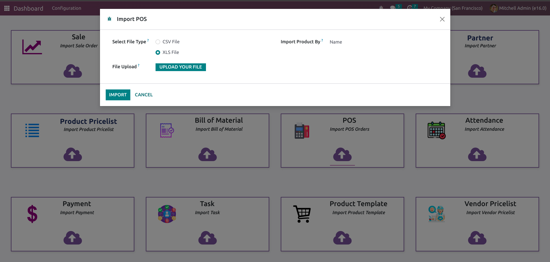 The Import Dashboard feature can be accessed through the "Import" button in the Odoo user interface.