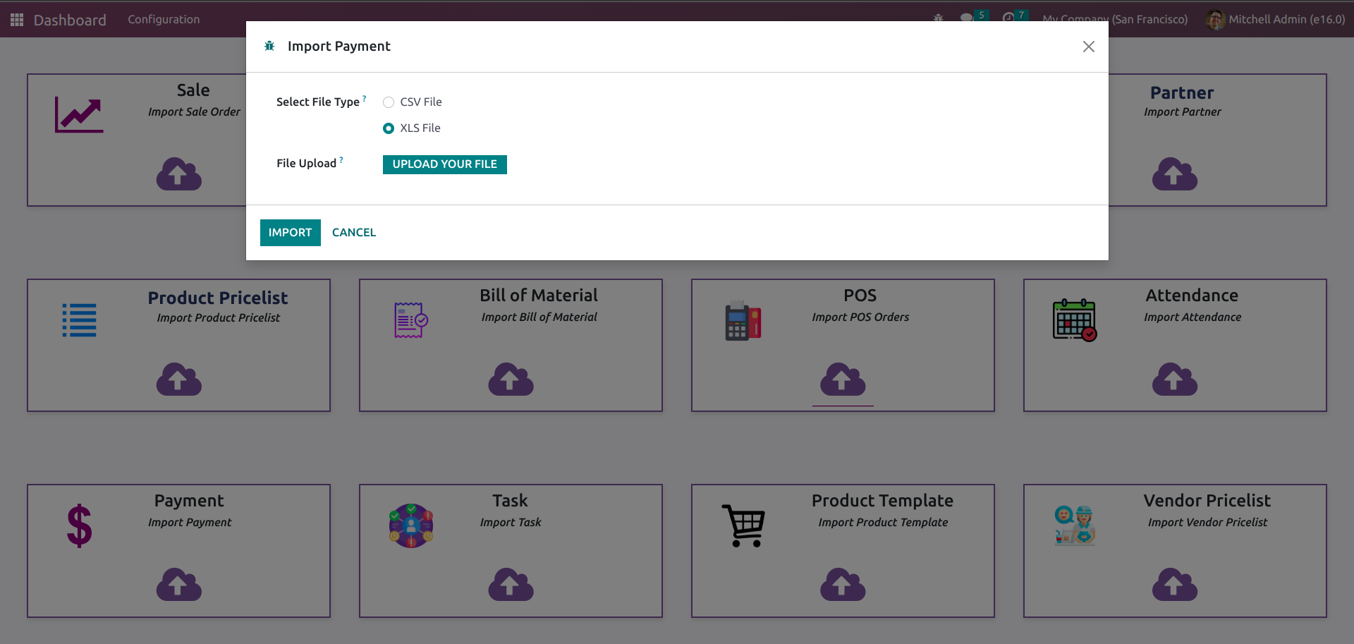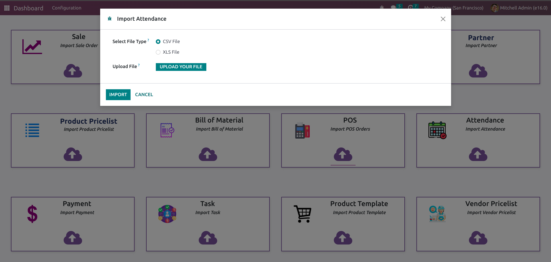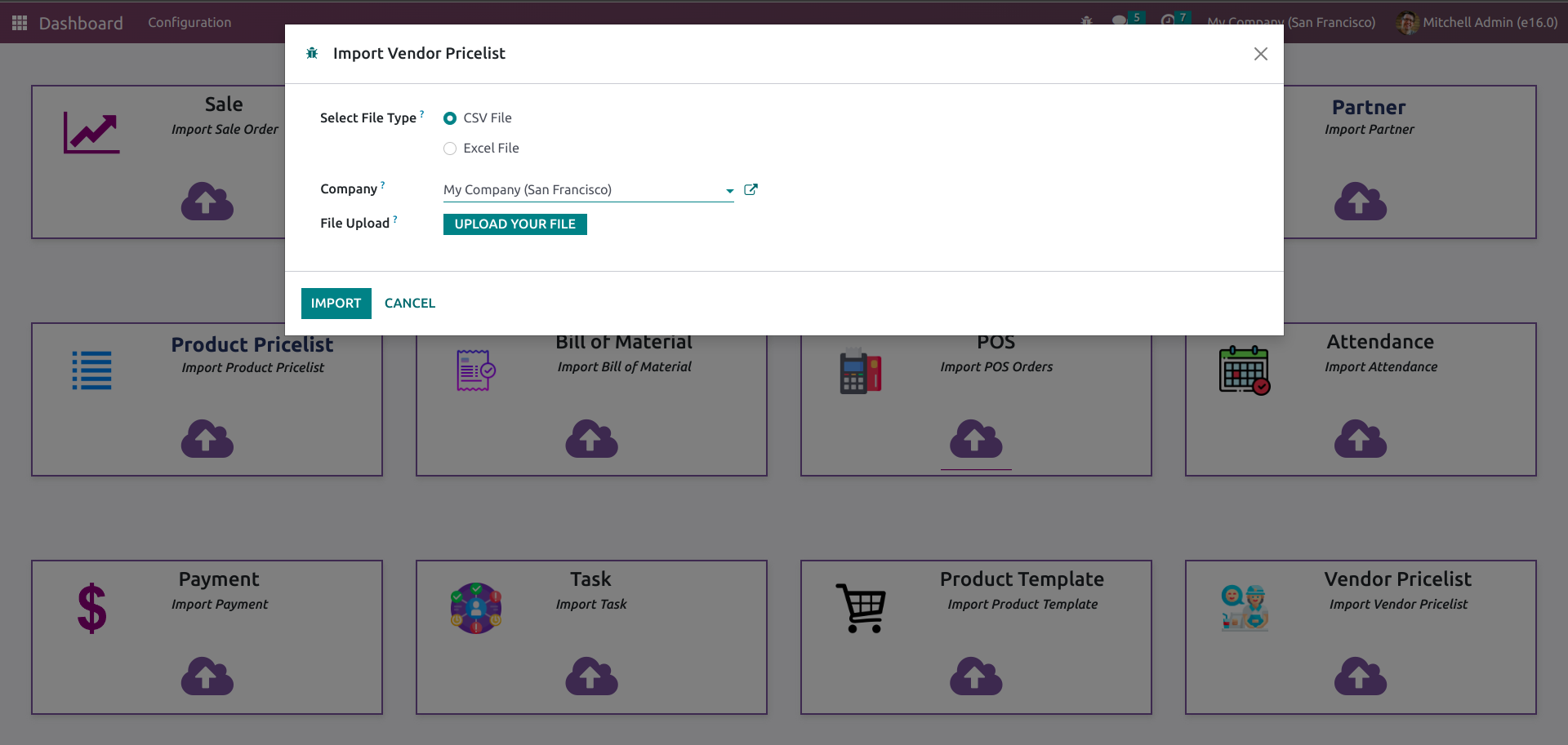 Odoo supports various file formats, including CSV, Excel.