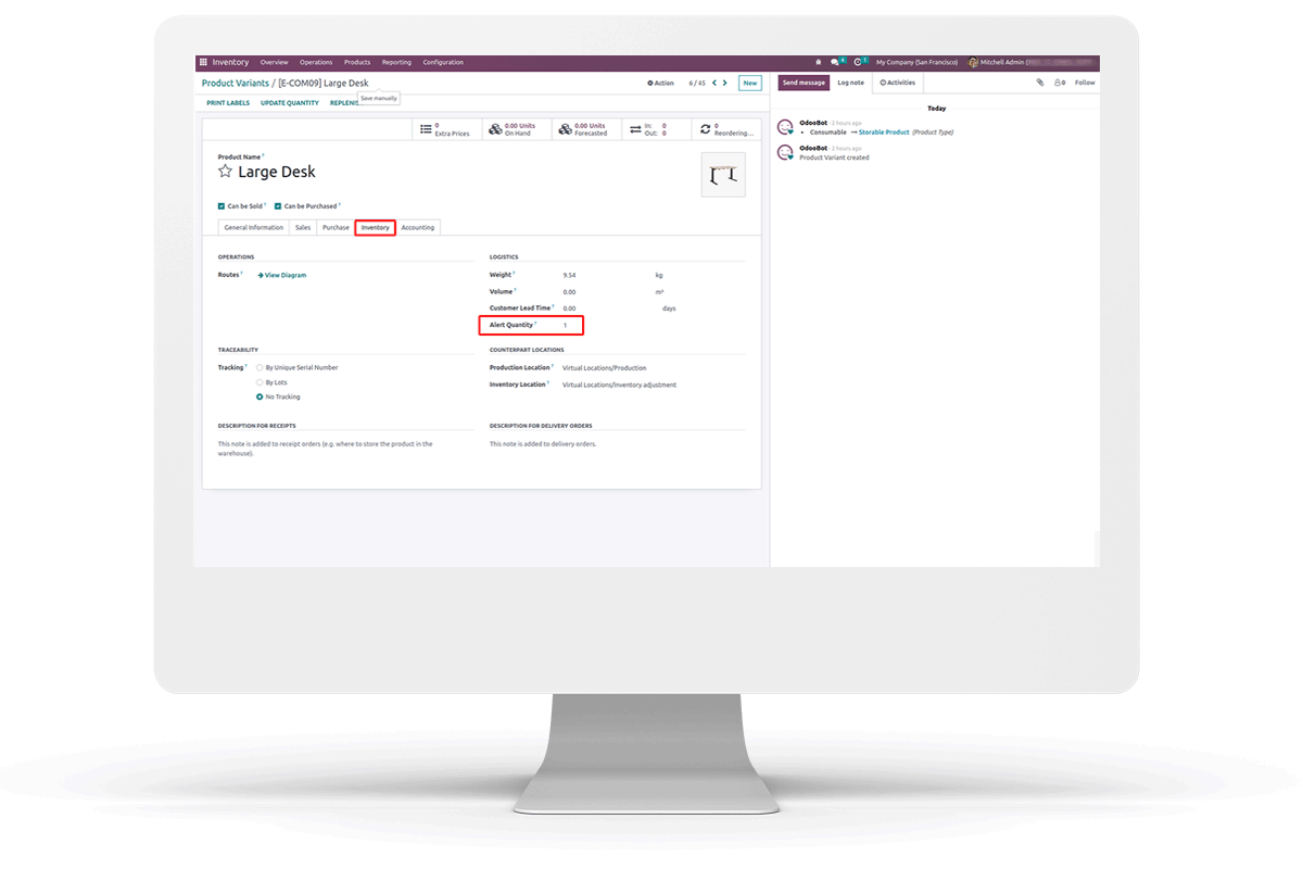 Product details get highlighted in red color when the product quantity goes below the alert quantity defined.