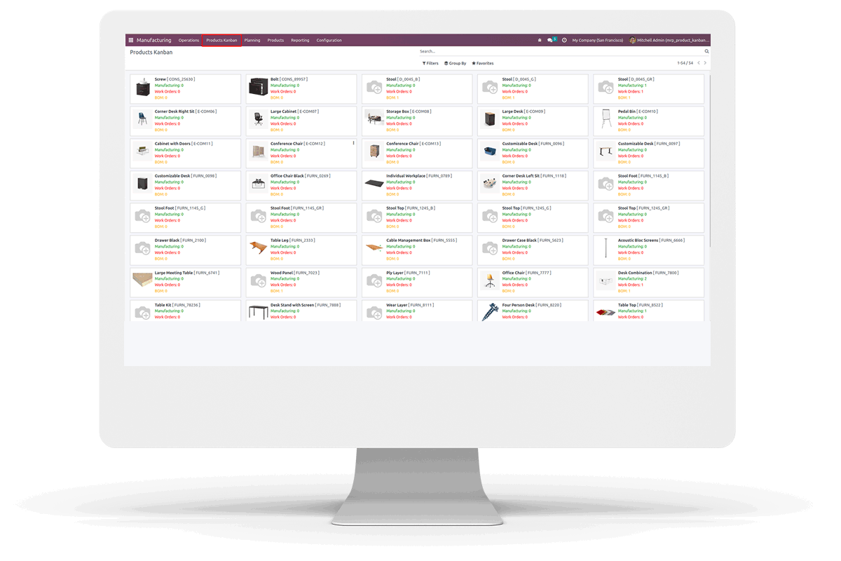 This module allows showing the manufacturing details in a product kanban view