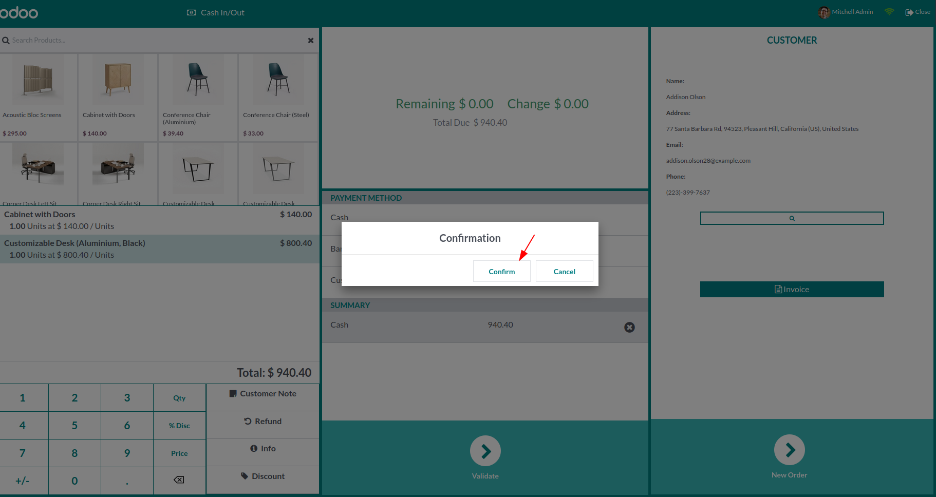 Click confirm to confirm order else click cancel.