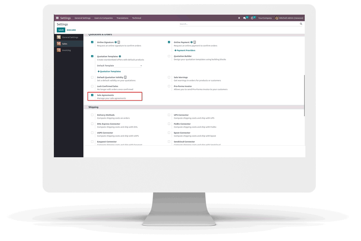 For the sale orders created from the agreement form the agreement will be automatically updated in the sale order form.