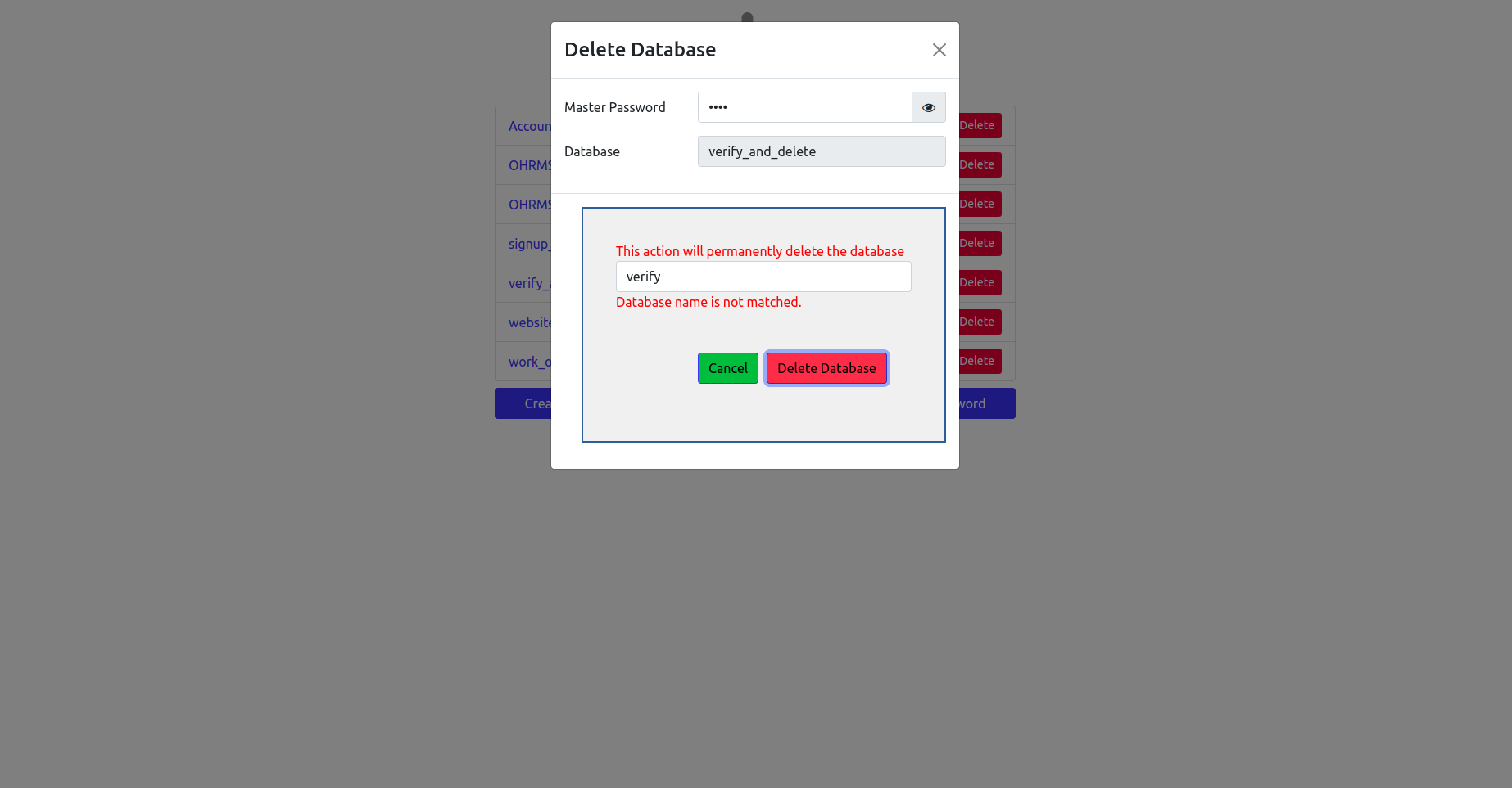 This Module is helps us to recheck and verify the Database Name while deleting the database.