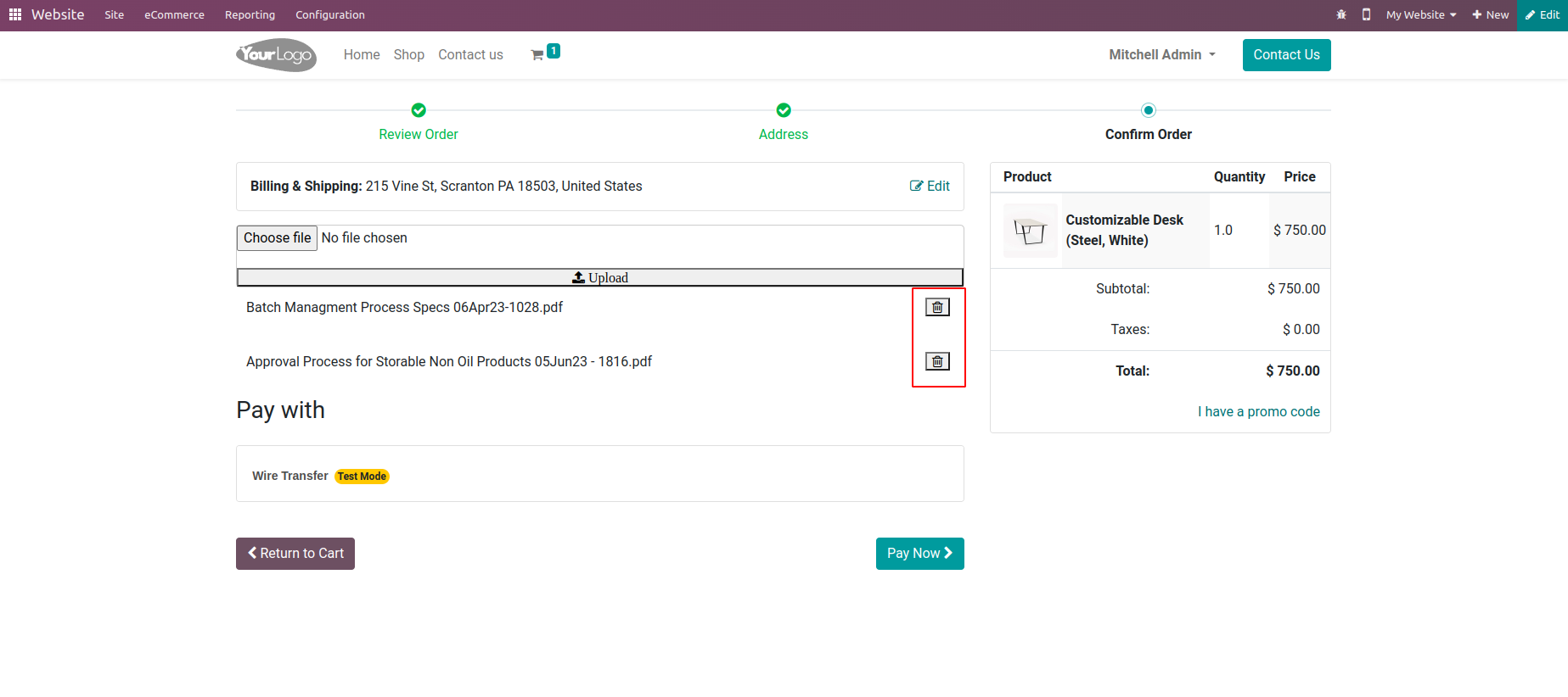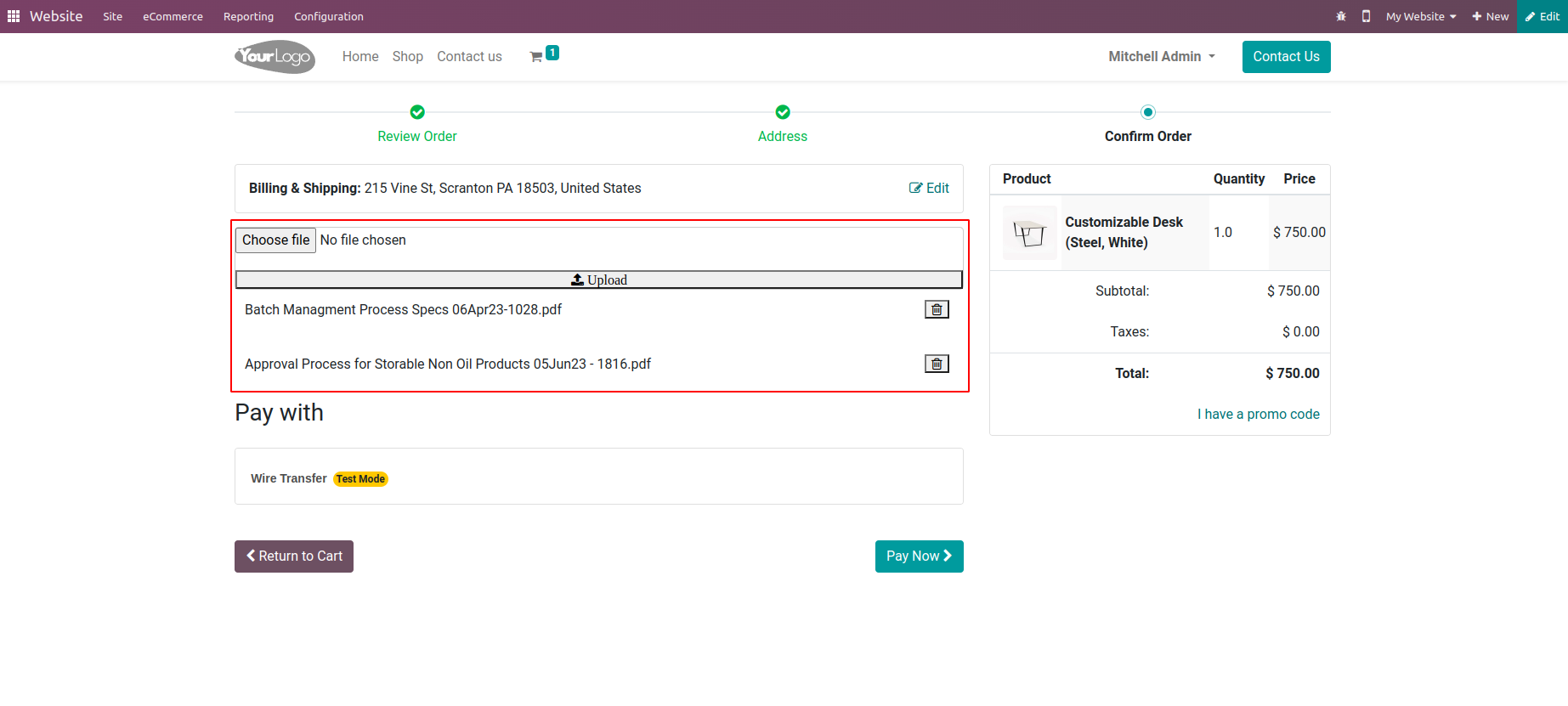 After the installation of this module, we can see a choose option for adding attachments in the payment page of website.