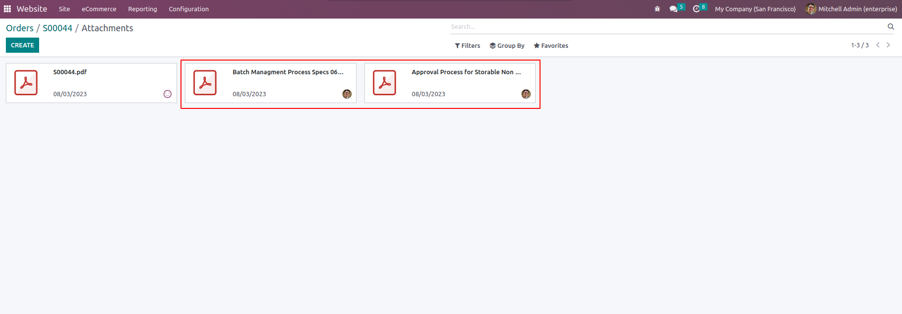A smart button is on sale order for seeing all related attachments of the sale order.
