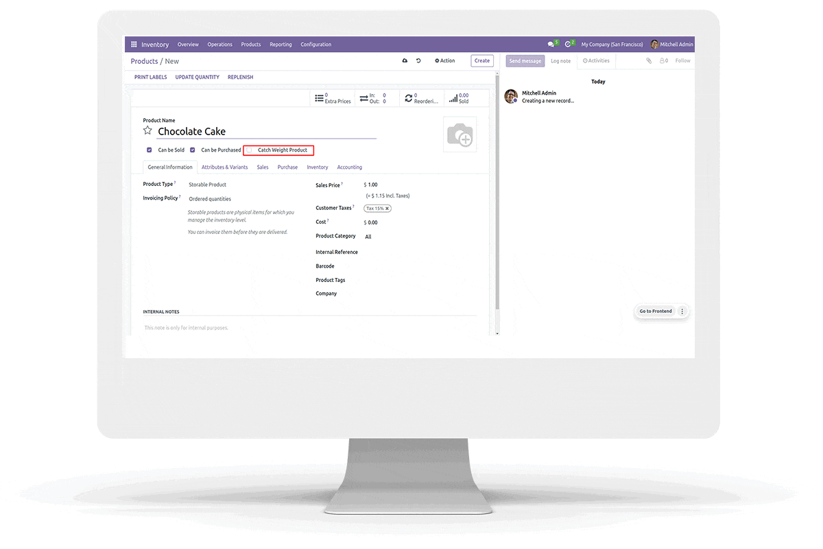 We can click on the check box "Catch Weight Product" to Enable The Catch weight on the selected product.