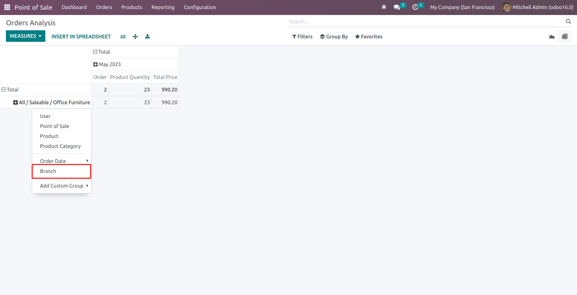 This module helps to control multiple branches of a single company on POS.Here a branch can be set for each POS.After configuring a branch for a POS, then thereafter all the operations related to the particular POS will be related with the branch. This module requires the base Branch module.After installing the base Branch module and POS Branch addon, the user can implement the branch concept on Odoo POS.