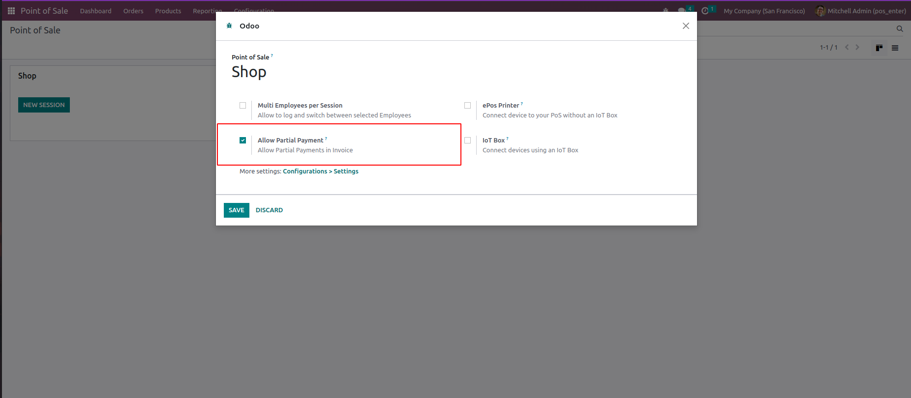 You have to enable Invoice and Partial Payment in Payment Screen to Allow Partial Payment in POS Screen.