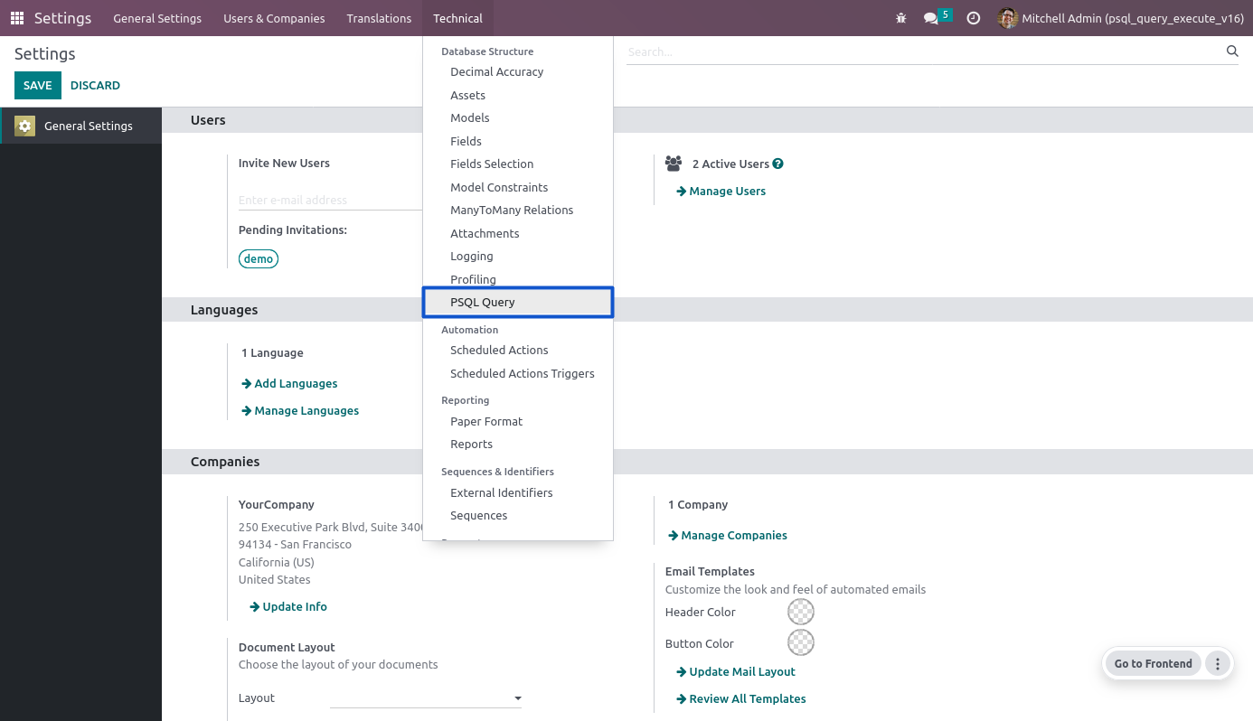 This module helps you execute a query directly in the Odoo interface and output your query in Excel.