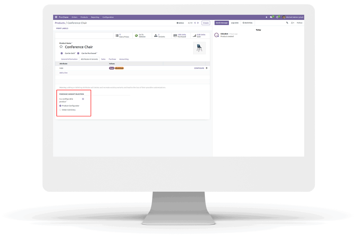 Users can switch between the Product Configurator and Grid view options according to their needs to add products to the order line