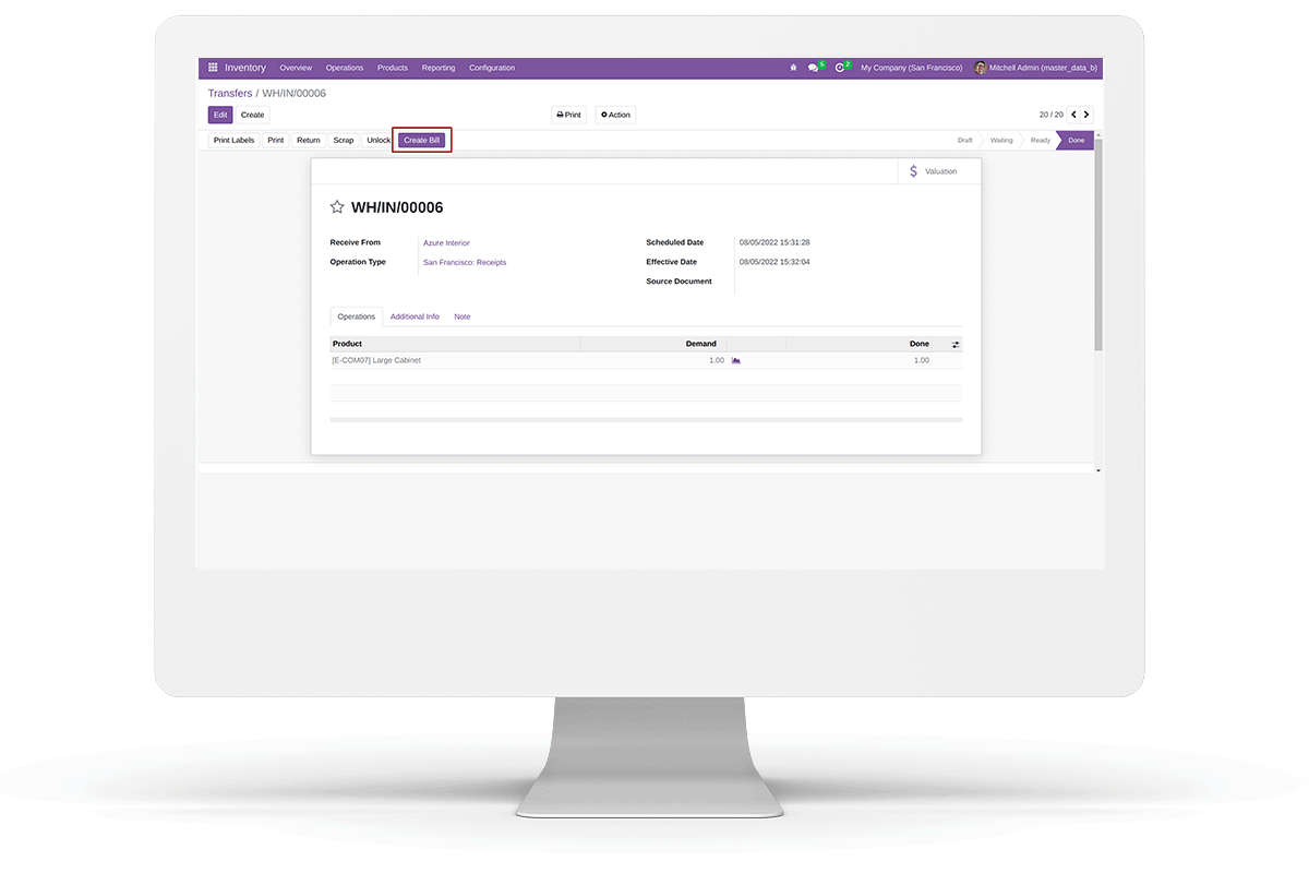 This module helps to create invoice,bill,credit note and refund from individual picking. so that users can easly create invoice and bill in the transfer section.