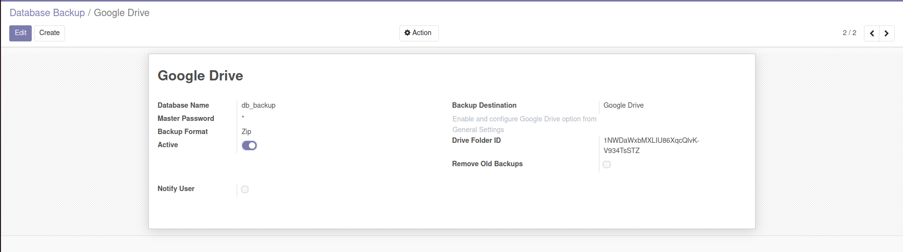 Select backup destination as Google Drive. Enter google drive folder ID. Enable and configure Google Drive option from general settings.