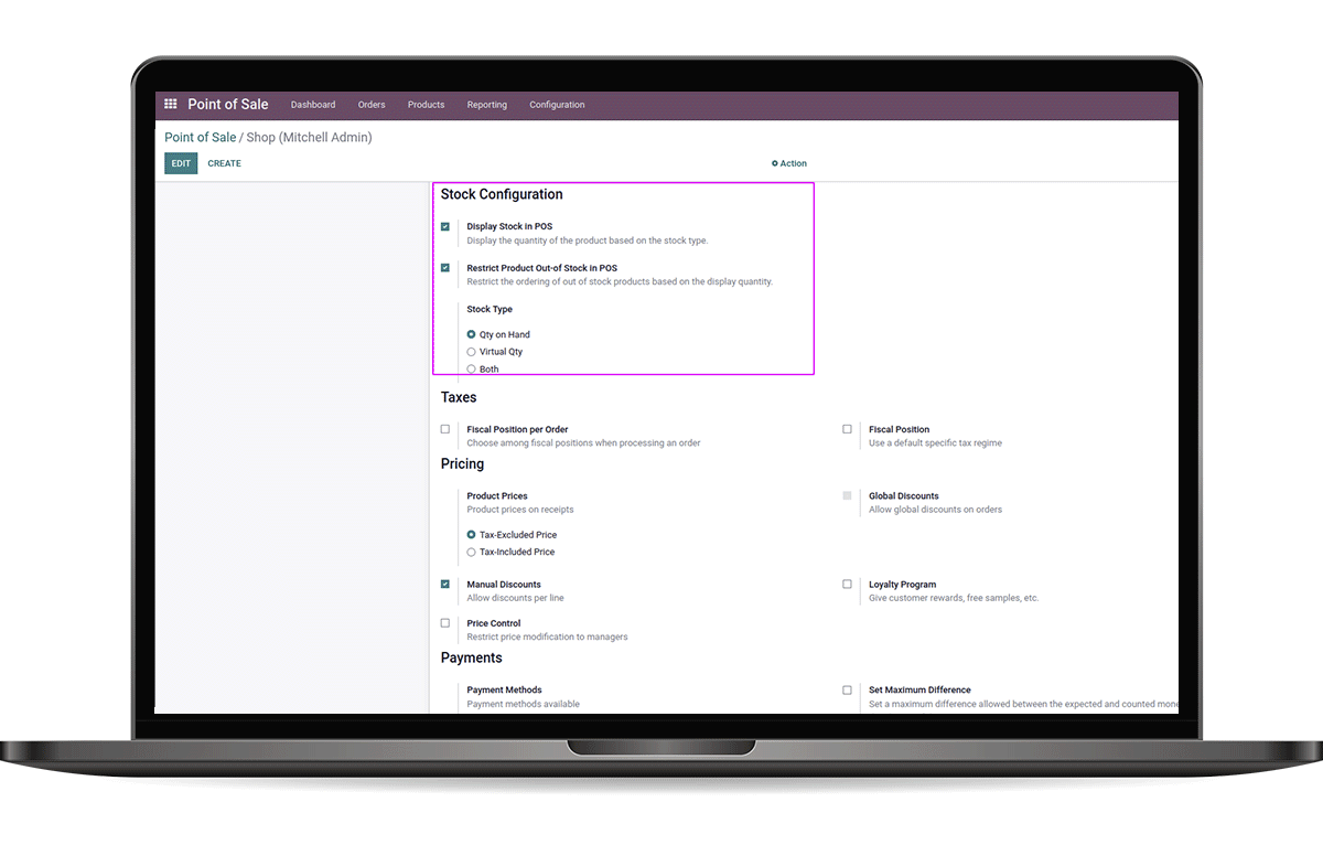 We can choose which type of (on-hand and virtual) quantity you have to be visible in POS.