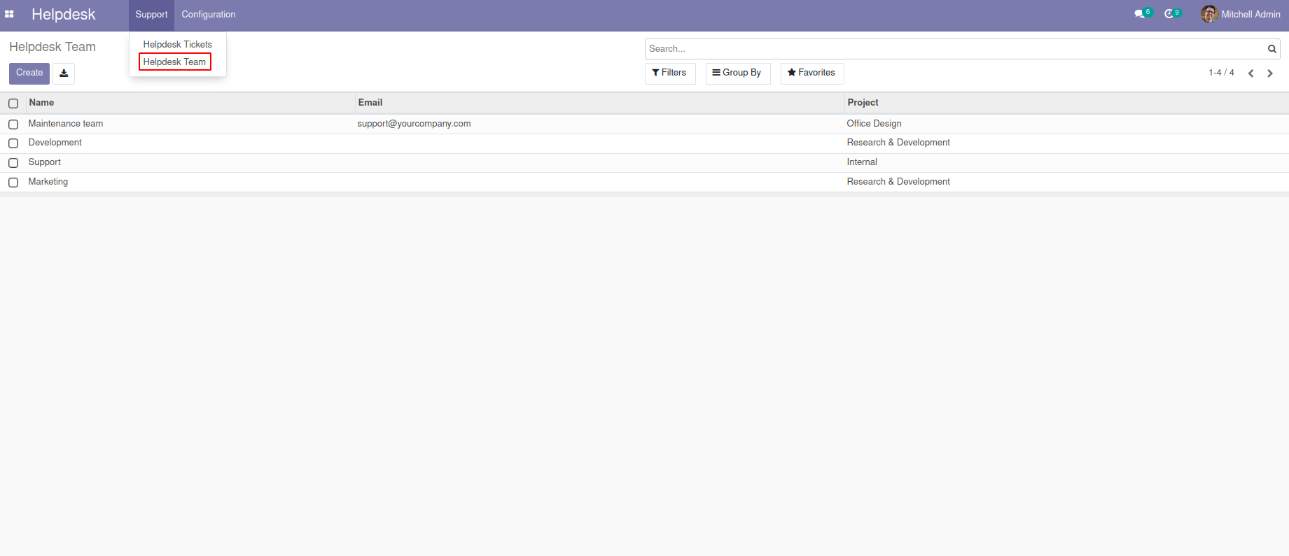 In the Helpdesk Support App, one can Create Ticket trough website portal and can view their tickets. The Internal user can assign th ticket to any team and link to any project if needed and can invoice based on the timesheet