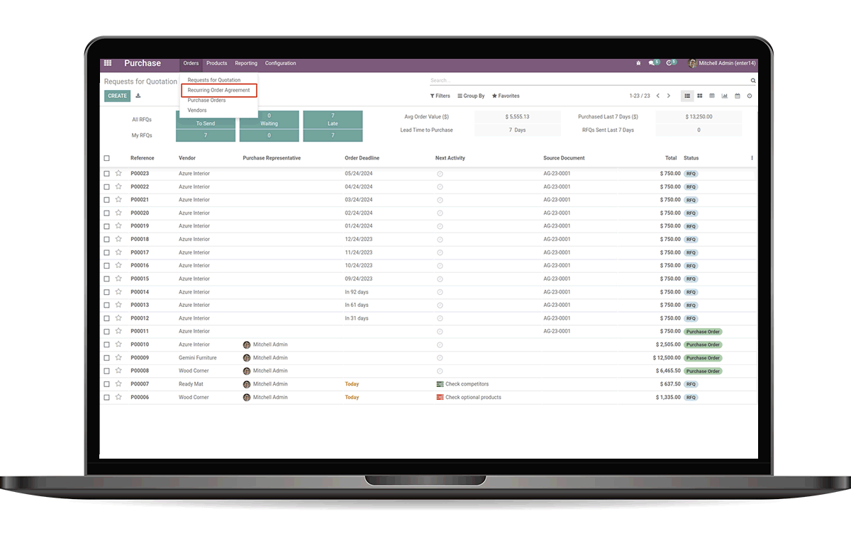 First Purchase Order Generated according to the details added in the Recurring purchase agreement.