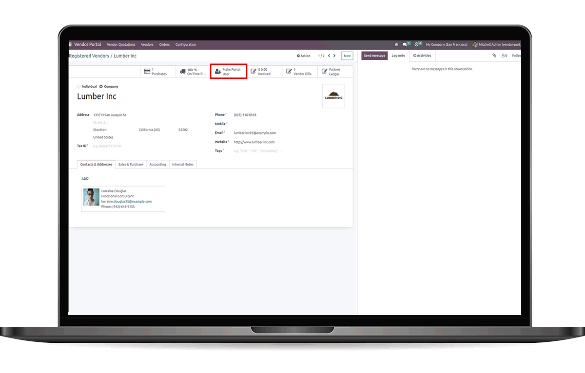 Take the Registered Vendors and click the below smart button to give the Vendor Portal access.