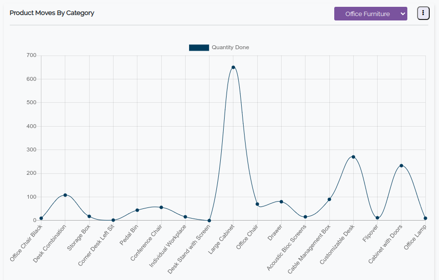 This graphs shows Product Move report and filtered based on the available categories in the product move.