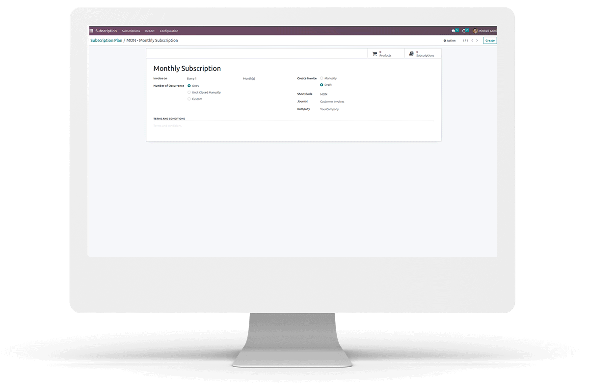 • In Subscription Plan we have a Radio Button named 'Create Invoice',
