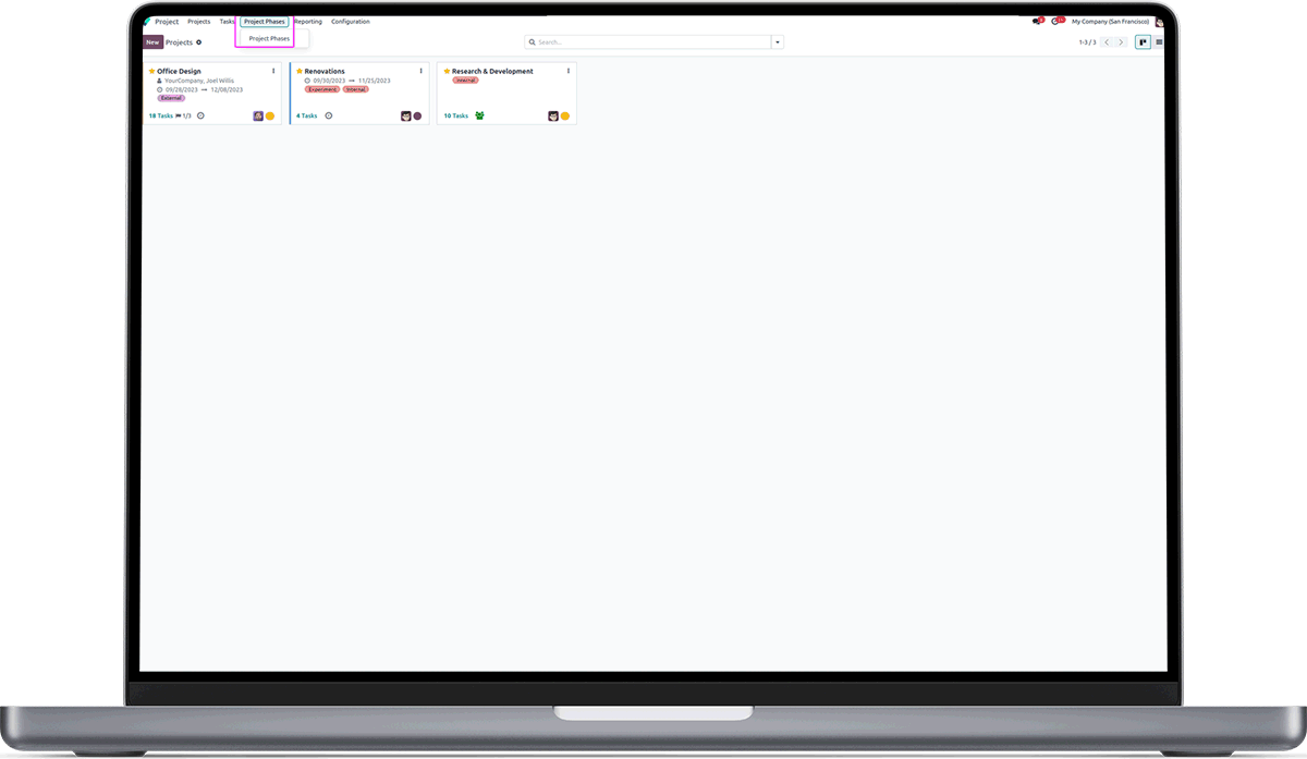 In form view of Project, you can see a smart button 'Phases' to view phases of corresponding project.