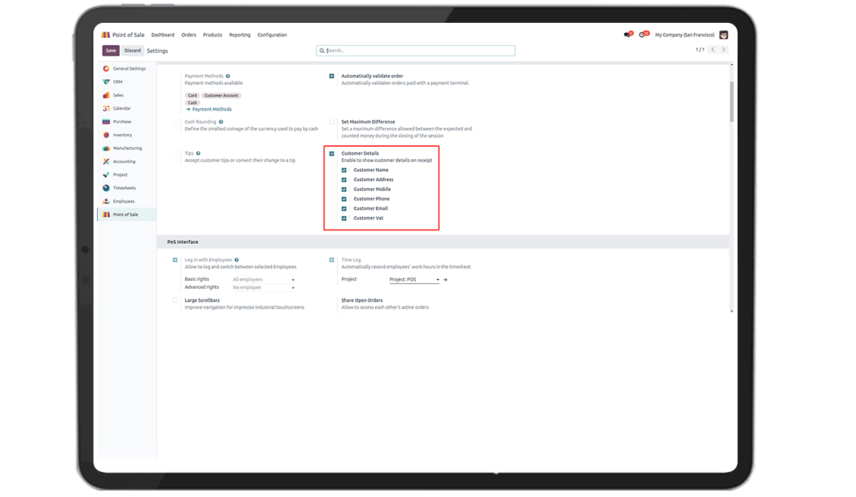 After Enable the condition in the settings You can see the enabled details are shown in the pos receipt.