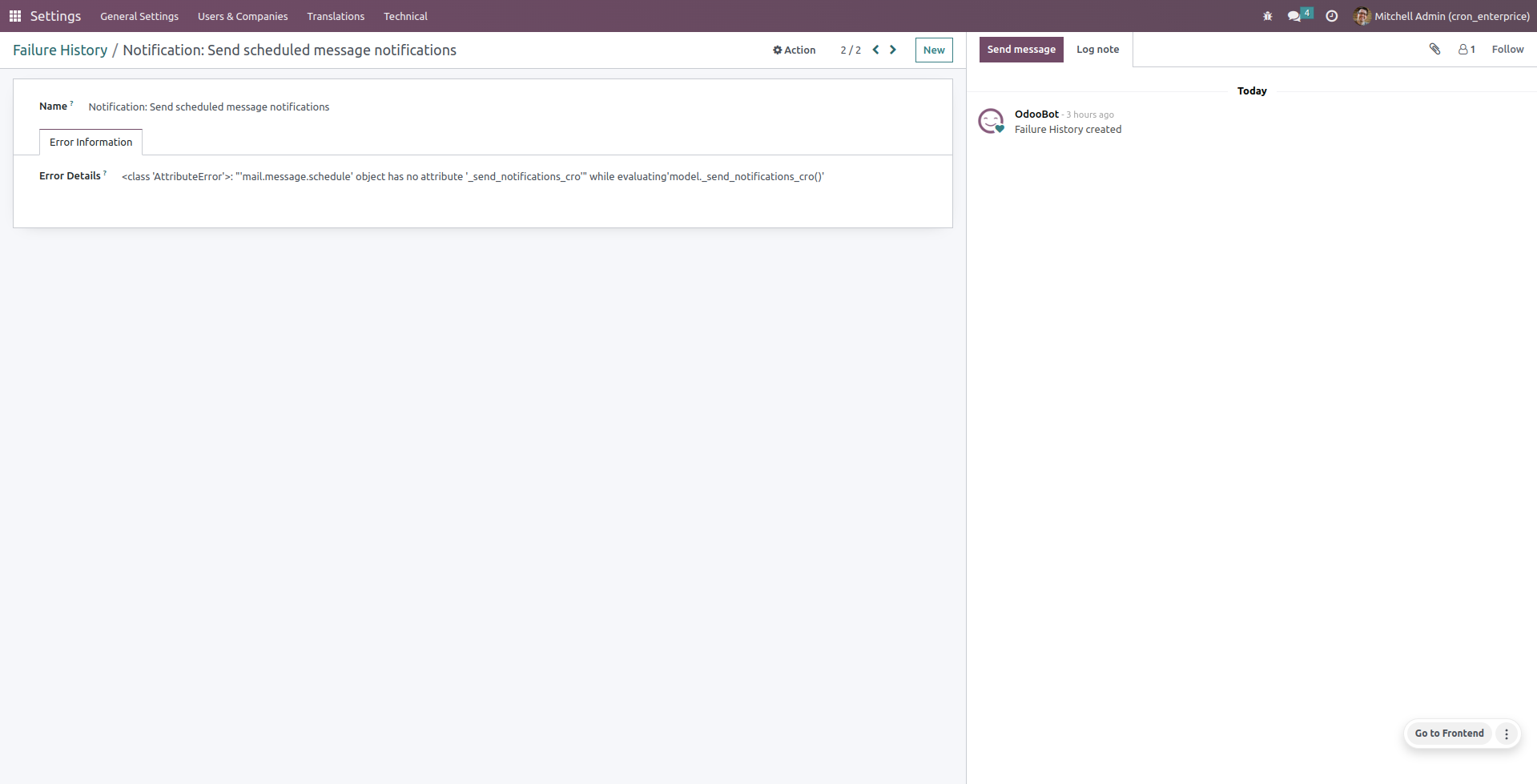 Failure history's will stores as a record