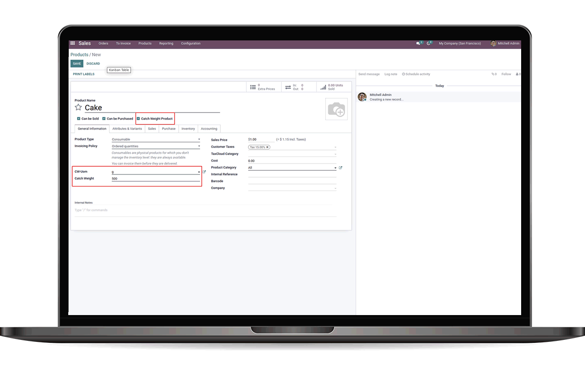 We can click on Catch Weight Product to enable the Catch Weight on selected product. Also add CW-Uom and Catch Weight.