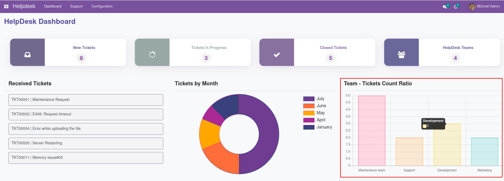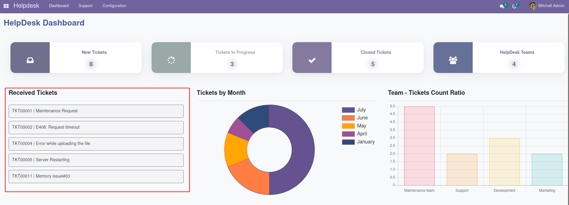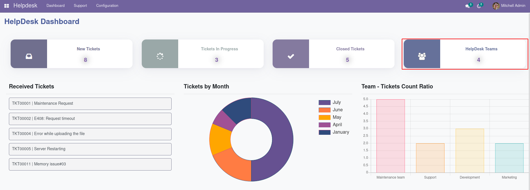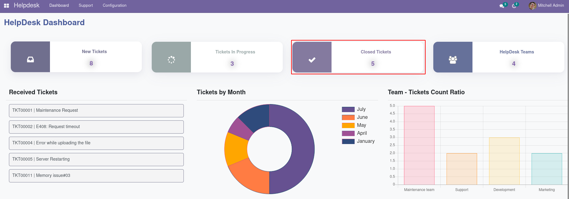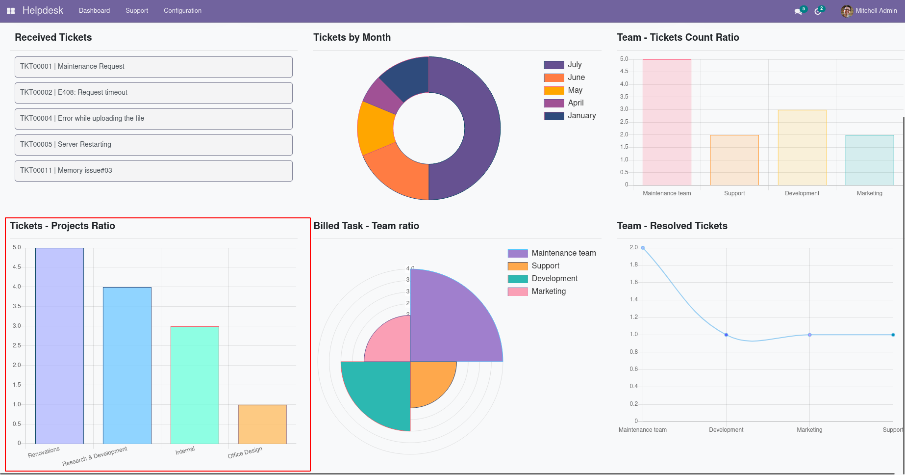 Detailed Dashboard View for Helpdesk Management Module