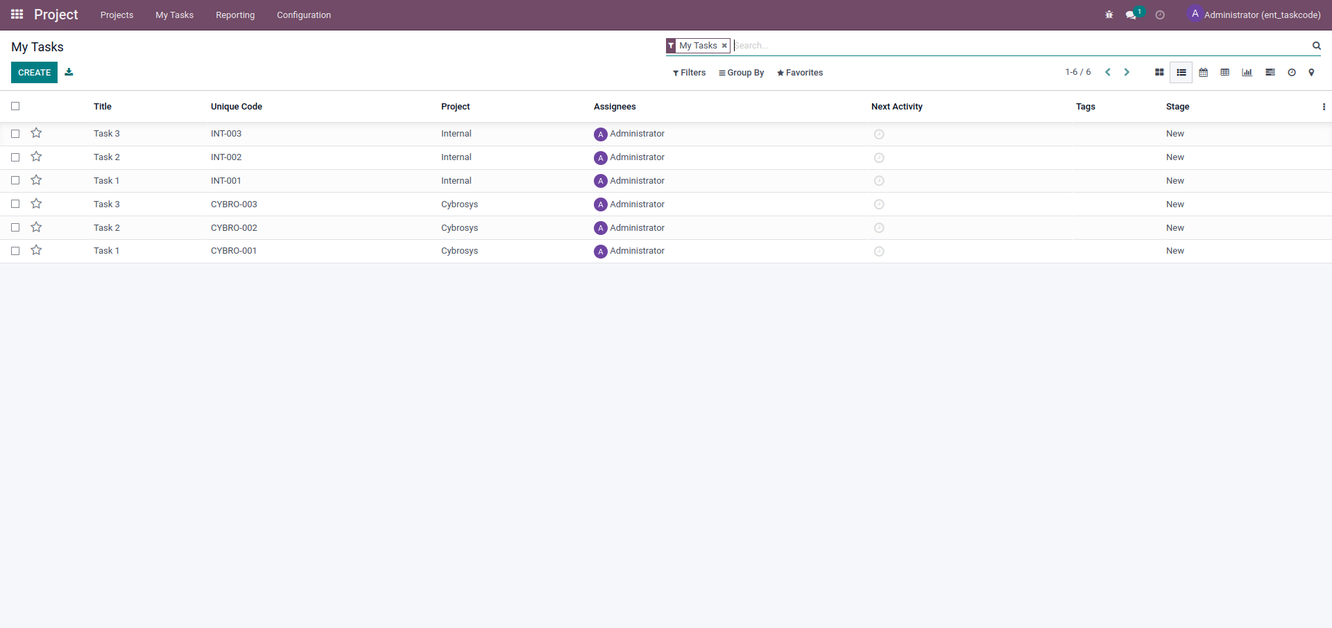 This module helps you to track each tasks with the unique code which is generated automatically.For projects a code can be set which will be used to generate the unique serial code for that project's tasks.Hence, this makes the tracking of tracks by project easy and convenient for the users.