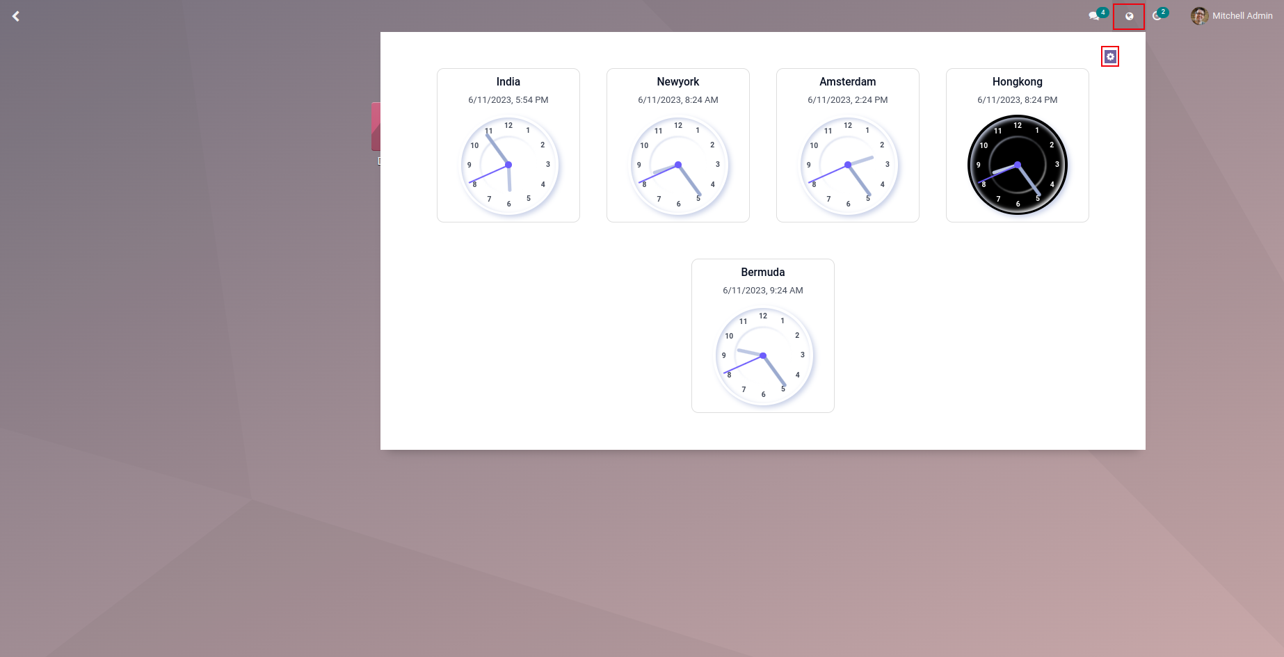 The globe icon in systray opens the interface with all the clocks configured in the settings. The settings button opens the configuration page.