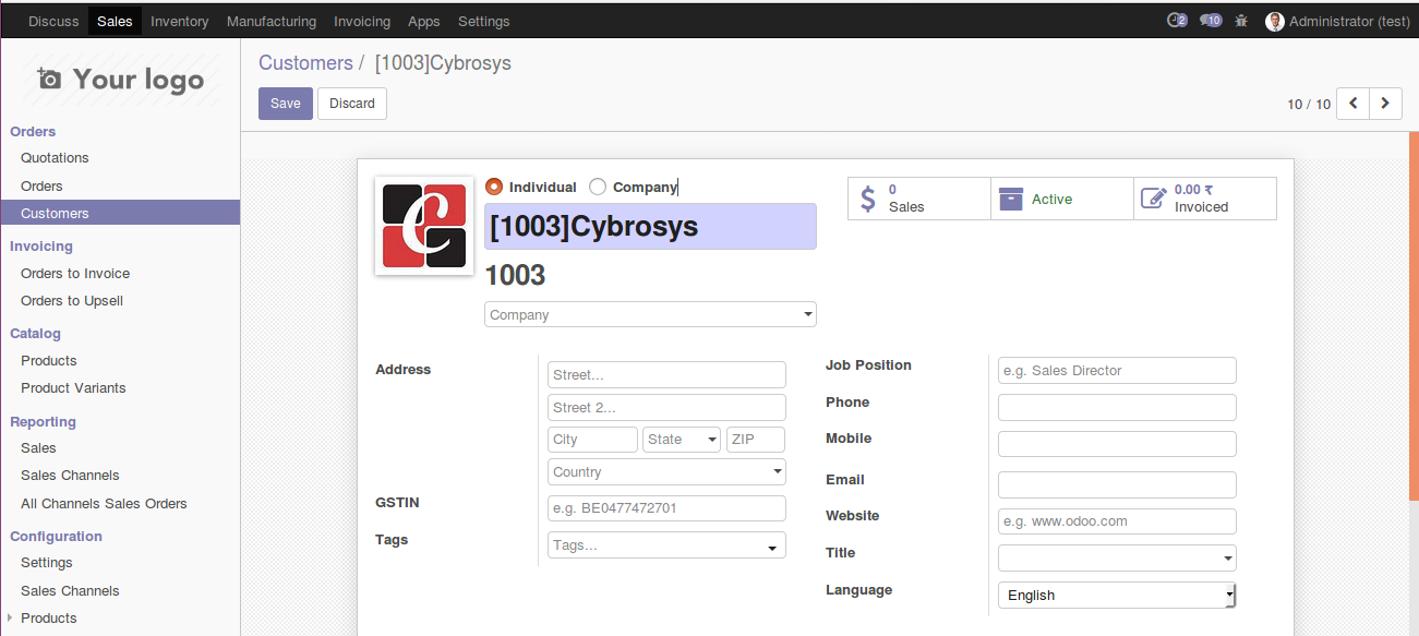☛ Create a customer and the code will generate automatically as defined in the company form..