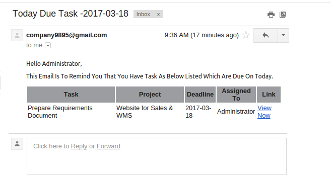View Now link will allow user to jump to related task directly. This email will group all tasks which are deadline today for that user and send summary table to user/employee by email.