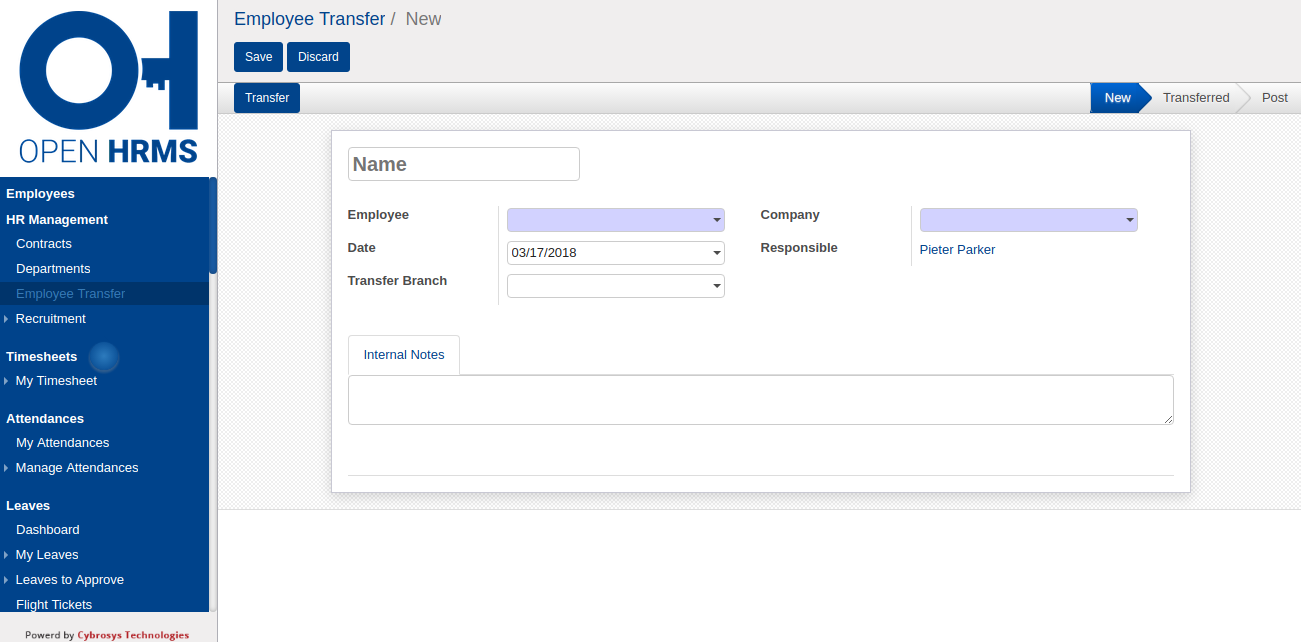 Transferring employees between company is a basic thing in a organization. Now Odoo lacks a provision for employee transfer. This module gives a basic structure for employee transfer
