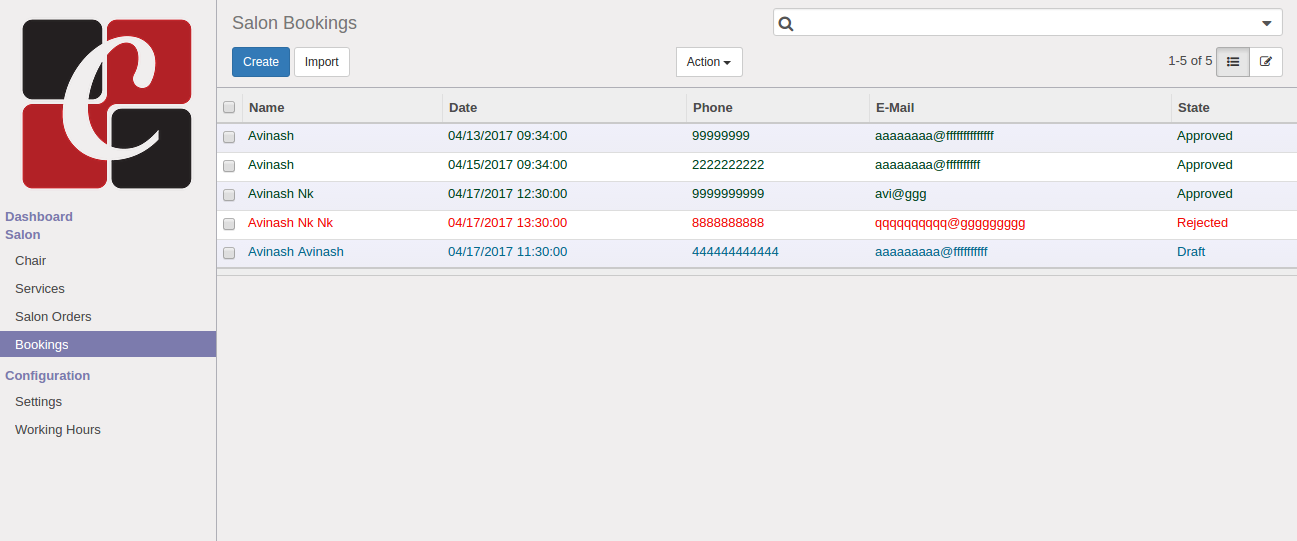 Here you can see all the online bookings. You can either approve a booking or reject a booking. In both cases the notification is send to the customer mail address. The approved bookings will be changed to salon orders.