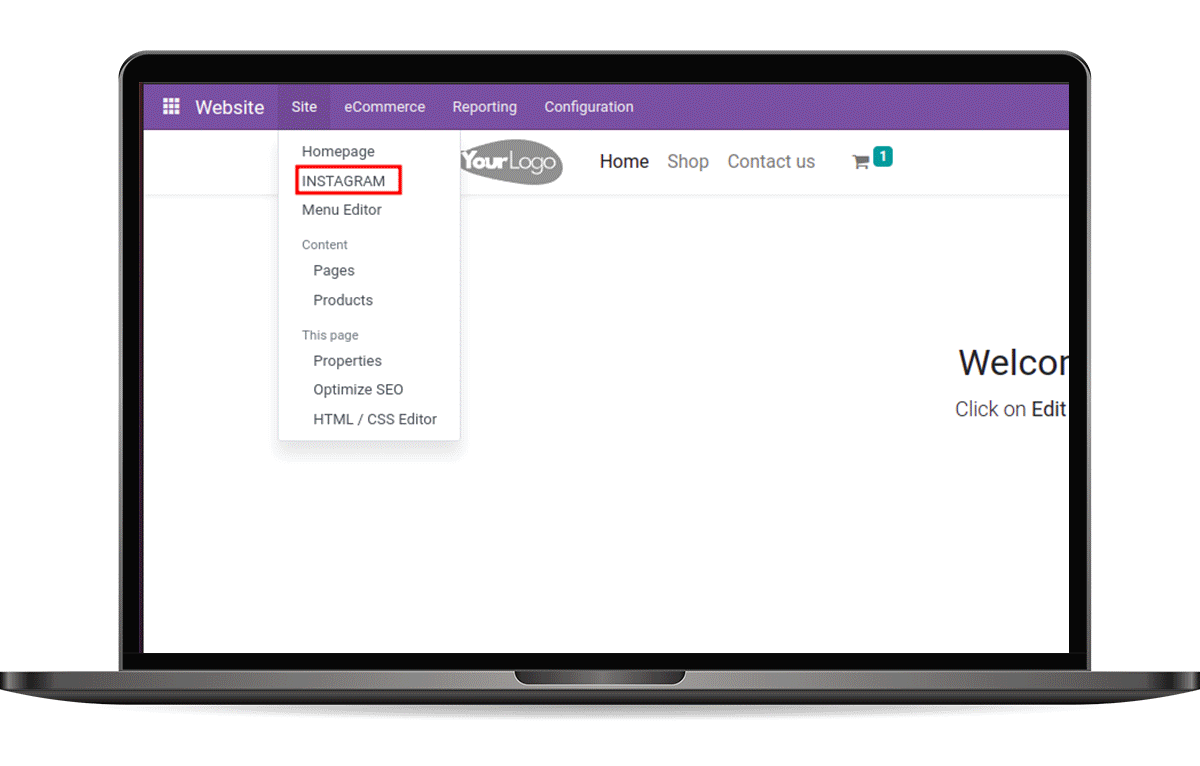 Visit the Odoo websitefrontend and click on the Edit option.After that, select the Instagram widget and drag it to the place where you want to showcase it on your Odoo website frontend, and click on the Save button.