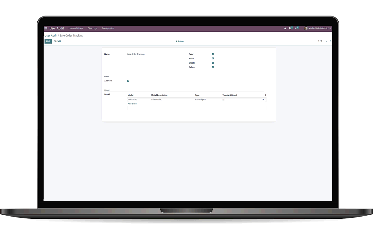 By setting up for tracking the write operation form the user audit edit and do some write on the specified model.