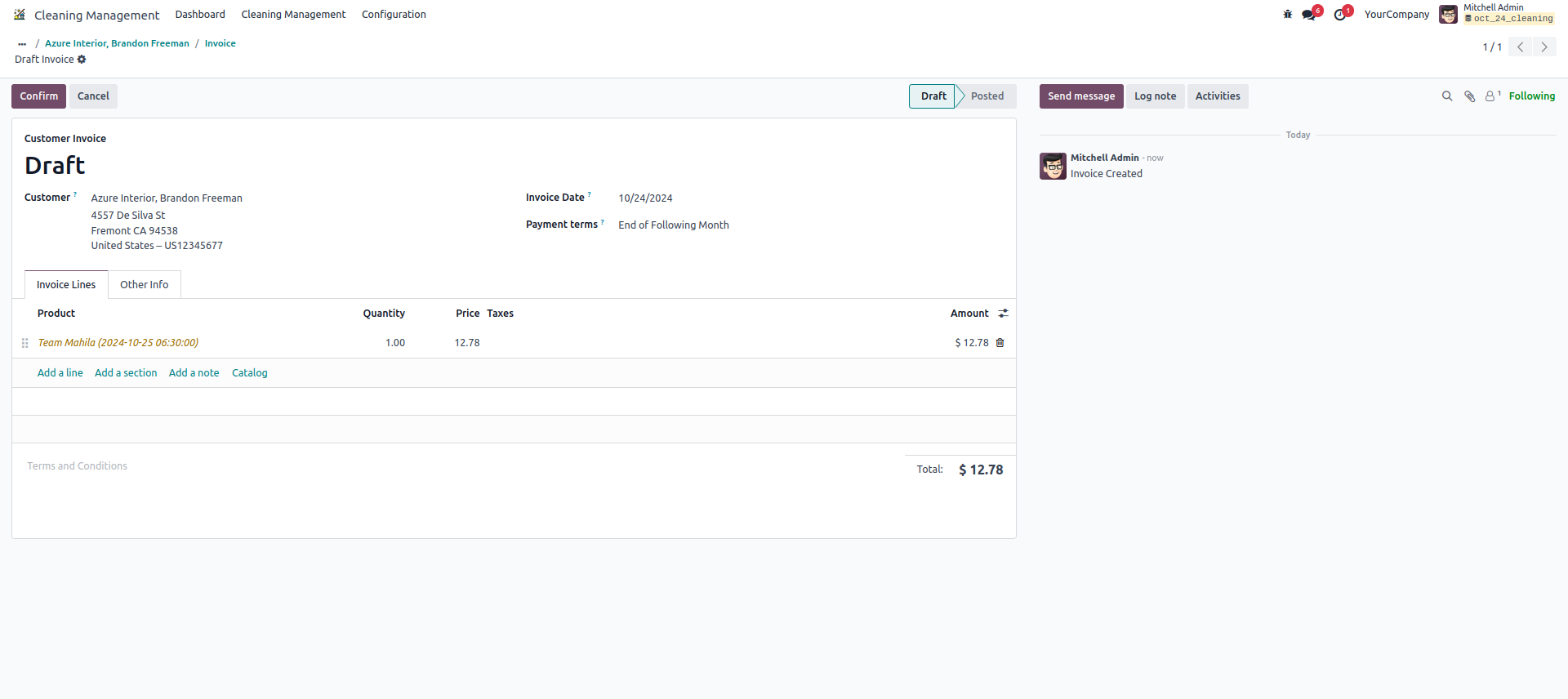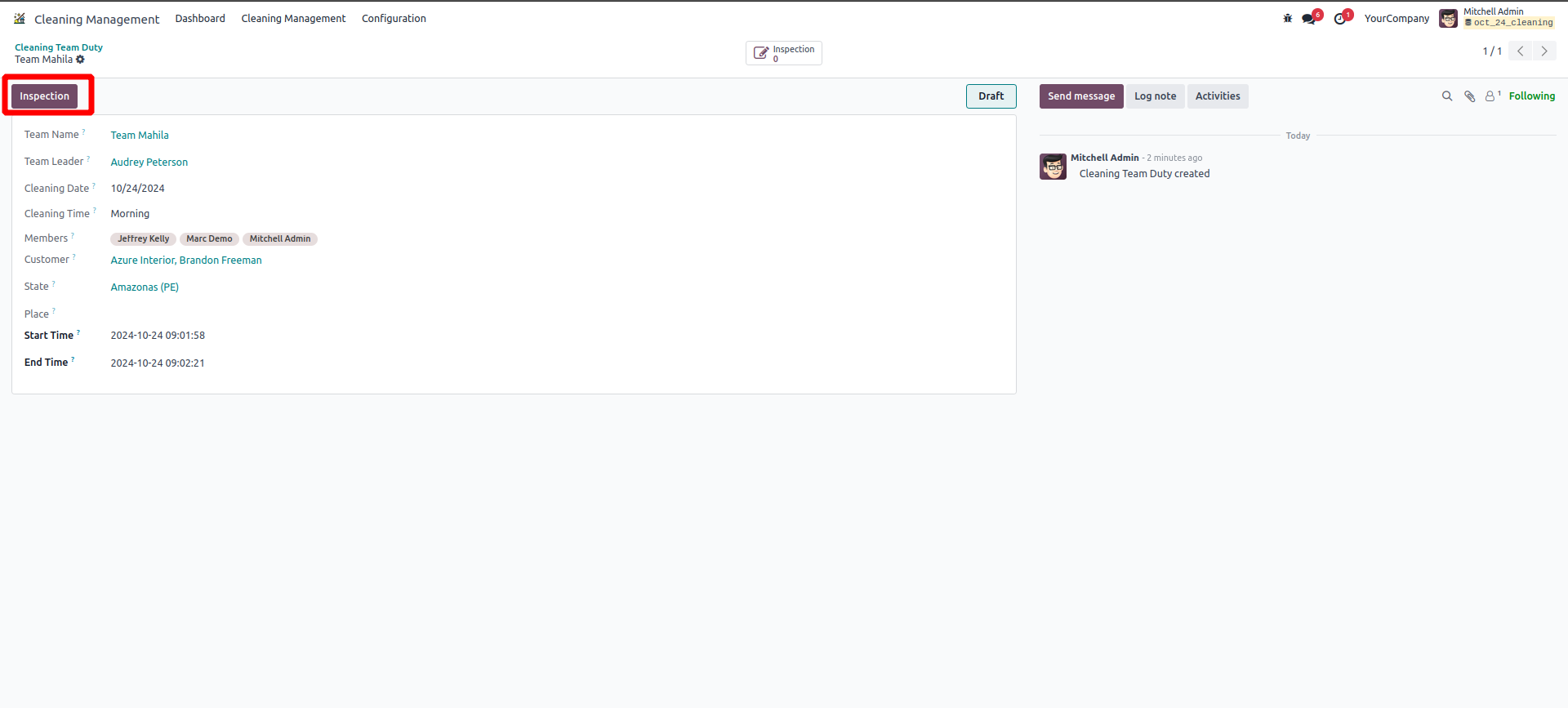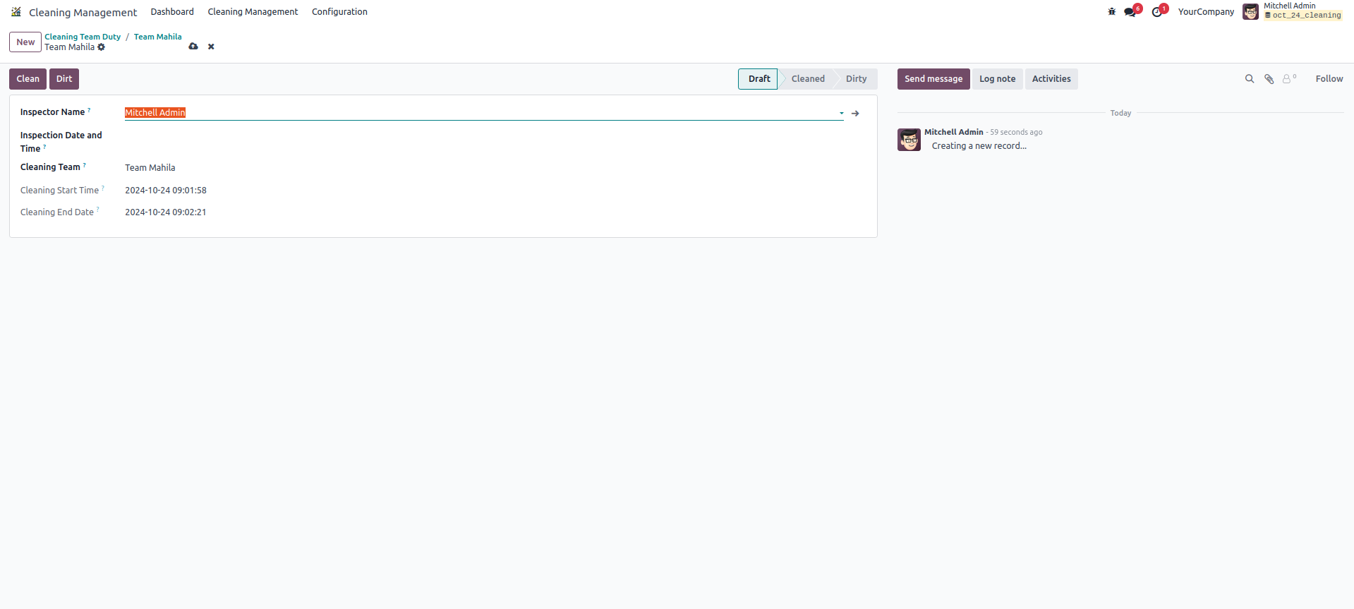 The Cleaning Management module in Odoo 17.0 is designed to help businesses manage their cleaning operations. It allows you to schedule cleaning tasks, assign them to staff, track progress, and maintain records of cleaning activities.